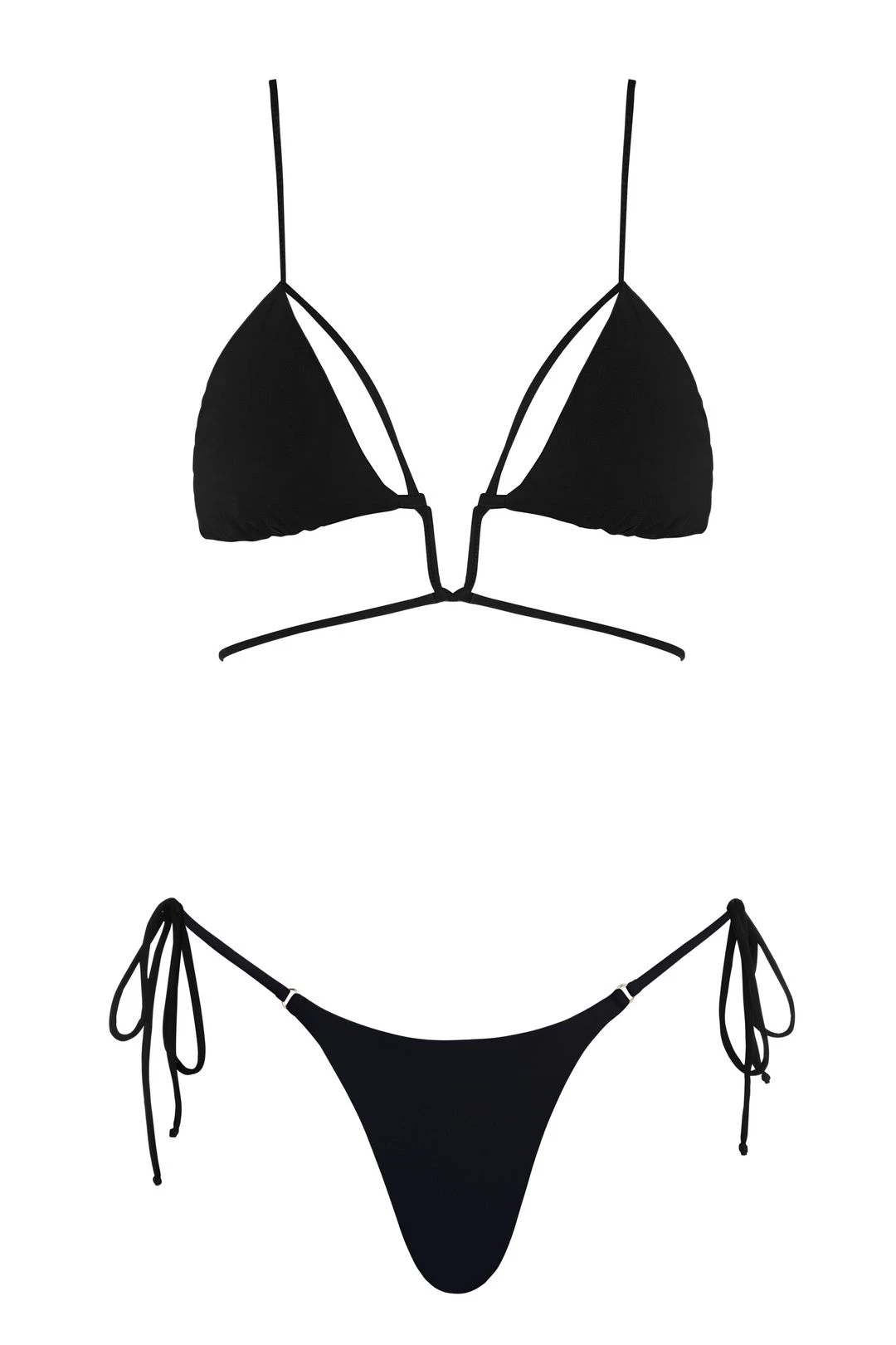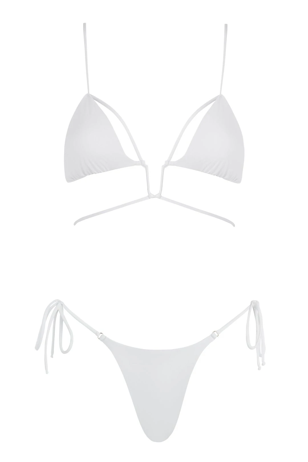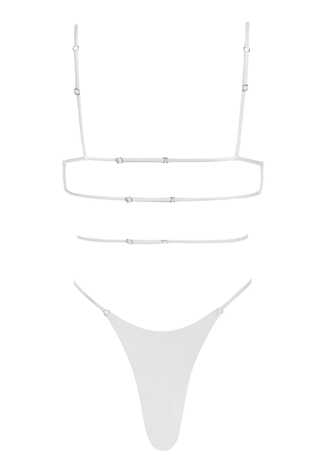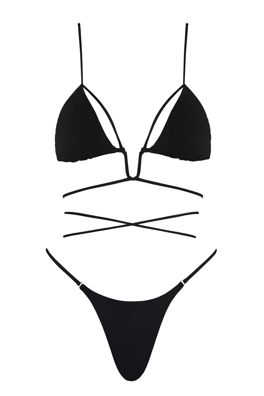 - Spaghetti straps go over the shoulders and connect to the bra fabric in back