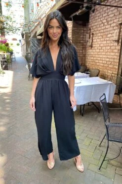 Look as cool and mysterious as the Muse Material Jumpsuit! This one-piece wonder features a button keyhole back, smocked elastic waist, and wide leg for an effortless, sleek look. The lined, deep v neckline adds a sassy touch so you’re ready to take any stage by storm. A jumpsuit to make ’em swoon!