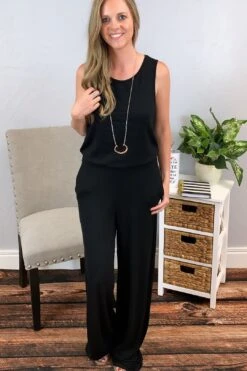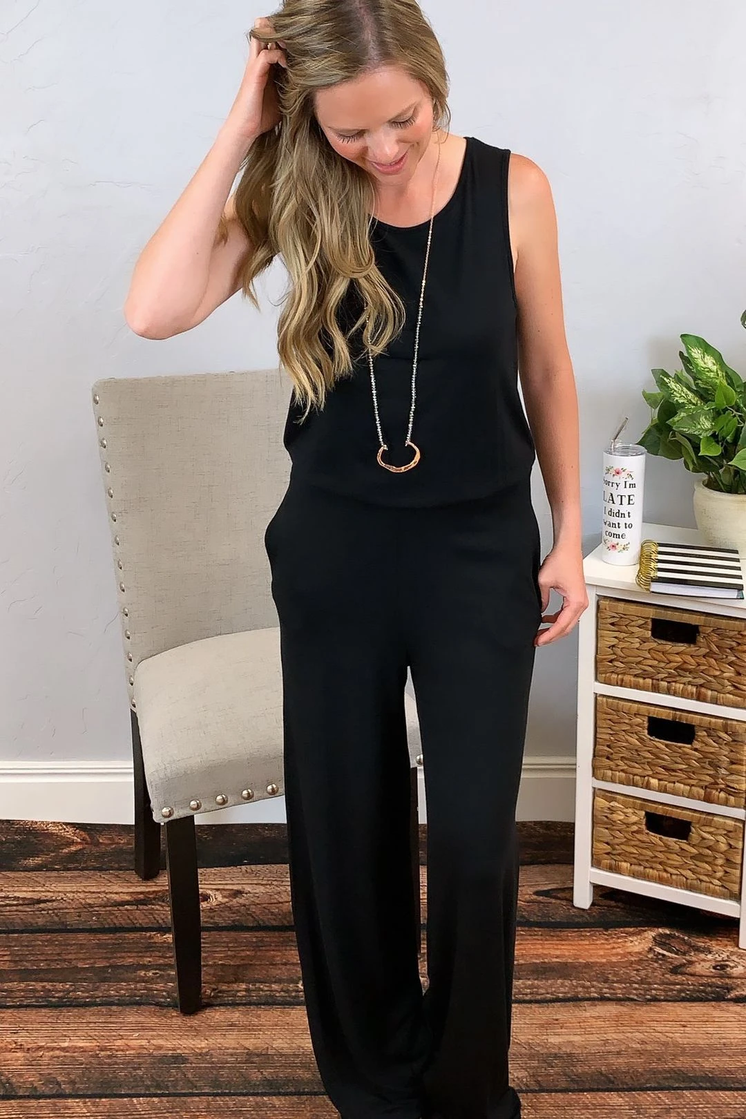 You will have absolutely no worries when you put on this black jumpsuit. This is a classic piece that you can wear time and time again. The elastic waist is flattering and we love how the top blouses. The keyhole back is a fun touch and of course, we love the pockets!