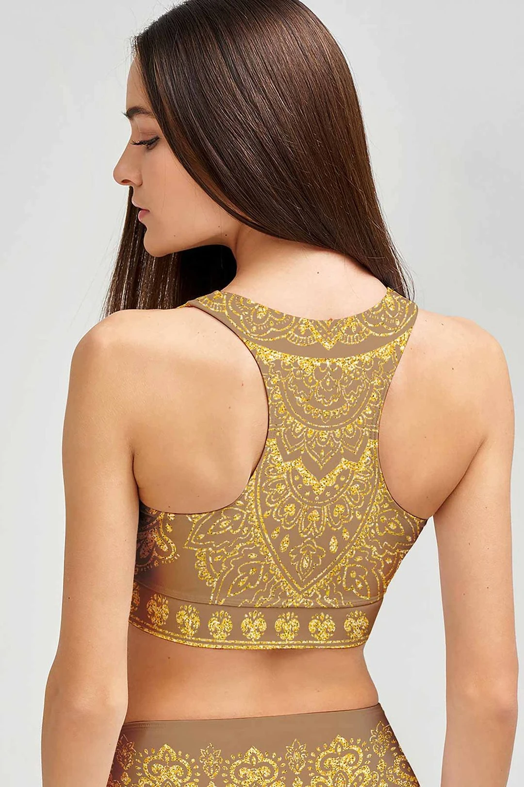 An effortless sporty look for days with our versatile padded sports bra. Designed with a high neck and a supportive elastic band, this cute crop top delivers stability and full coverage. It is fully lined and has removable cups for an optional fit. Made from the highest quality fabric with UV 50 + properties, this long-line yoga top is super lightweight and silky soft on skin. It provides breathable wear and a range of movement for any activity. One-of-a-kind piece to perfectly match your active lifestyle.