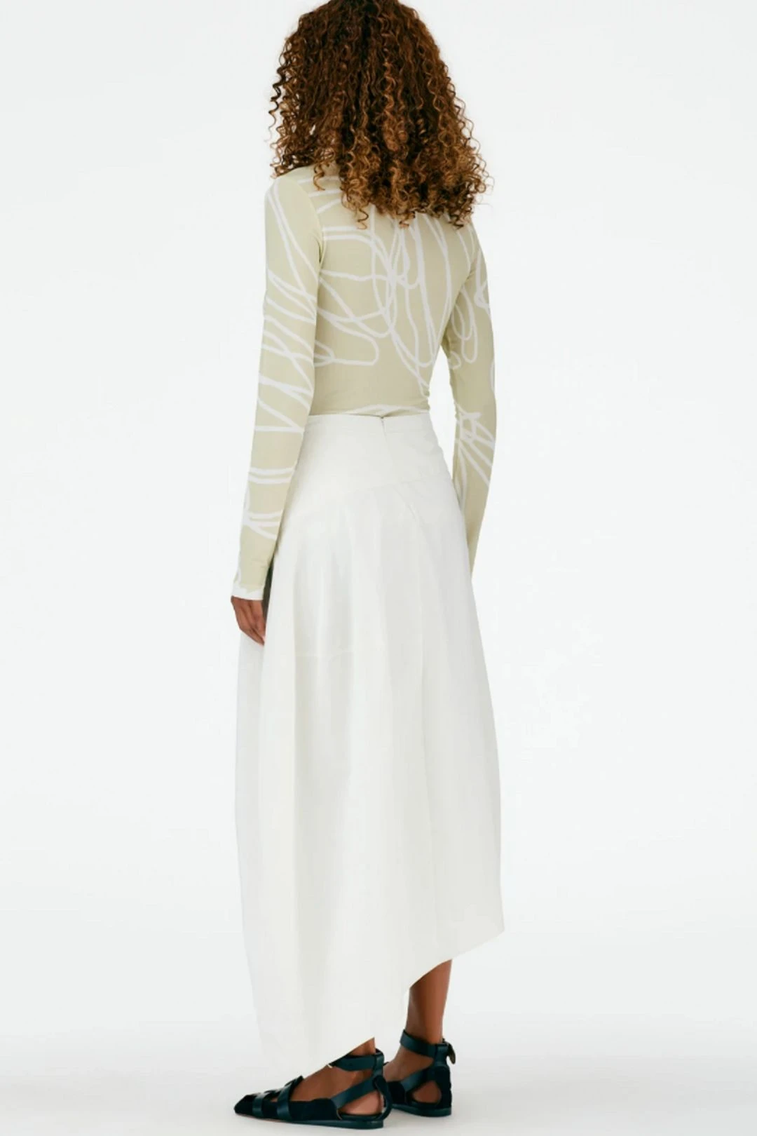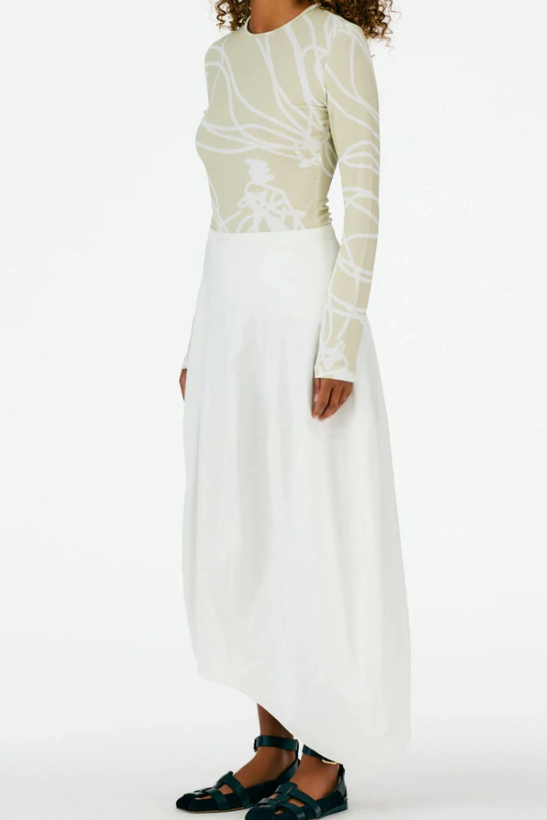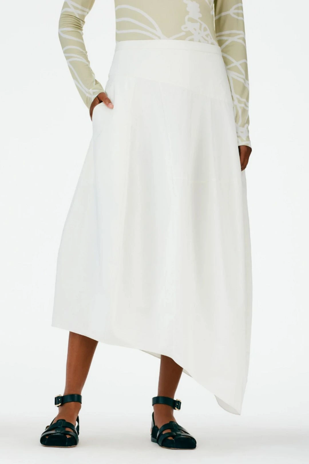 Midi skirt with semi-voluminous silhouette and asymmetrical hem
