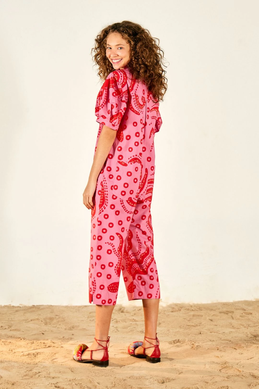 You just found your new go-to-everywhere buddy the Octocool Jumpsuit is ready to fit all your sunny plans! This pink jumpsuit has a slim fit to hug you in the right places, and the puff sleeves add that standout kinda look you love. The cropped length is perfect to show off your cool shoes )