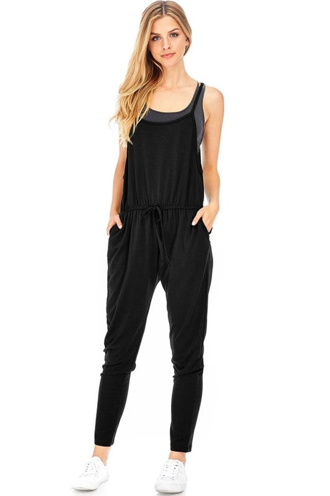 This cute jumpsuit is calling your name! Featuring soft terry cloth material, a squared neckline, low cut sides, and a jogger pant fit, you’ll want to do everything from hiking to napping in this jumpsuit this Summer!