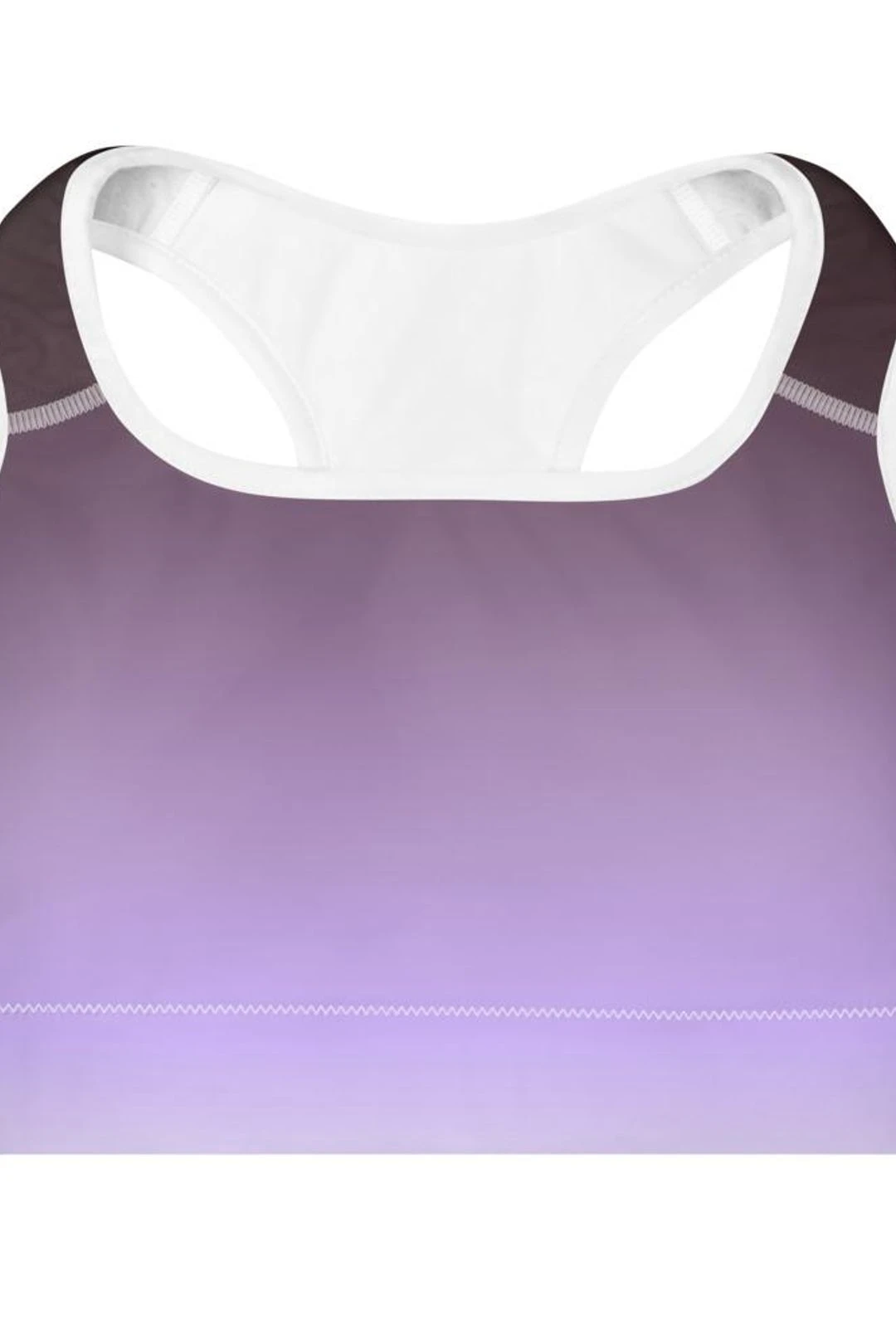 • Racerback with a scoop neckline in front and a wide elastic under breasts