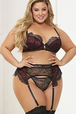 Plus Size Lace It On Me Bra And Garter Set
