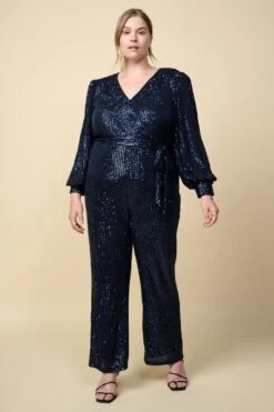 In the mood to make a statement when you go out? This sparkling sequined jumpsuit should do the trick. With puffed sleeves, slightly flared legs, and a waist-defining self-tie belt, this wrap-style number is sure to capture everyone’s attention.