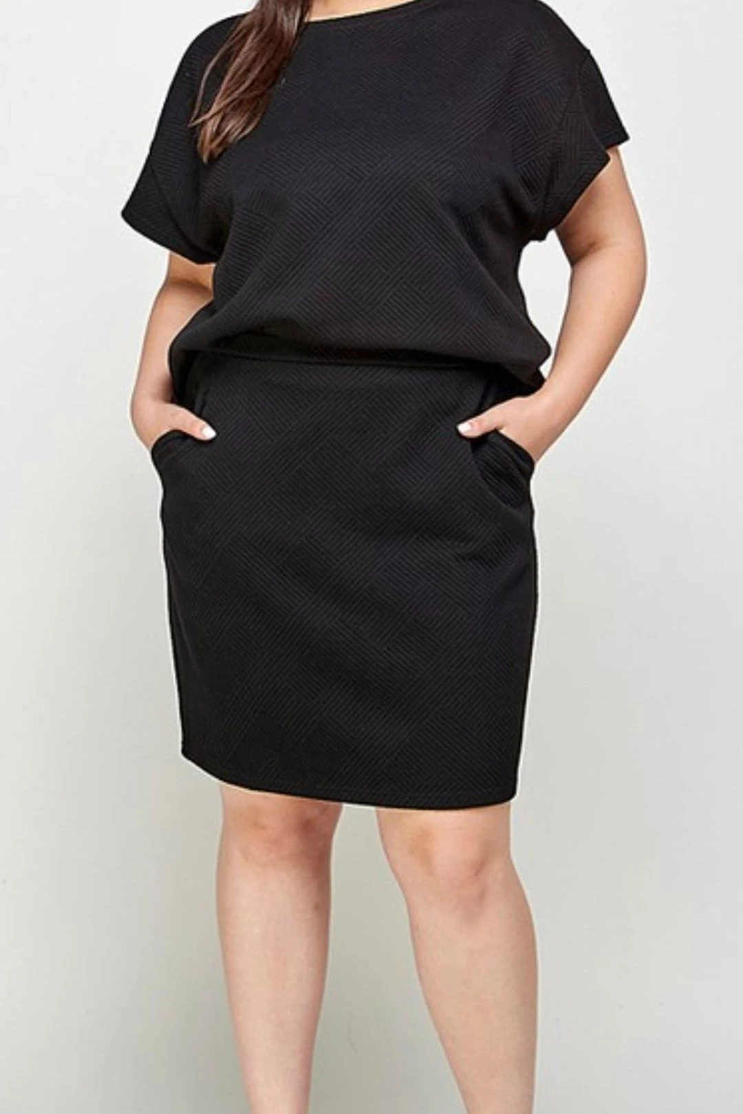 This Textured Skirt is the perfect t addition to our bestselling Textured Lounge Set! The textured fabric gives the look of luxury while remaining super comfy! It features a scoop neck and dropped shoulder top. Fit is true to size. Model is wearing a size small and is 5’5″.
