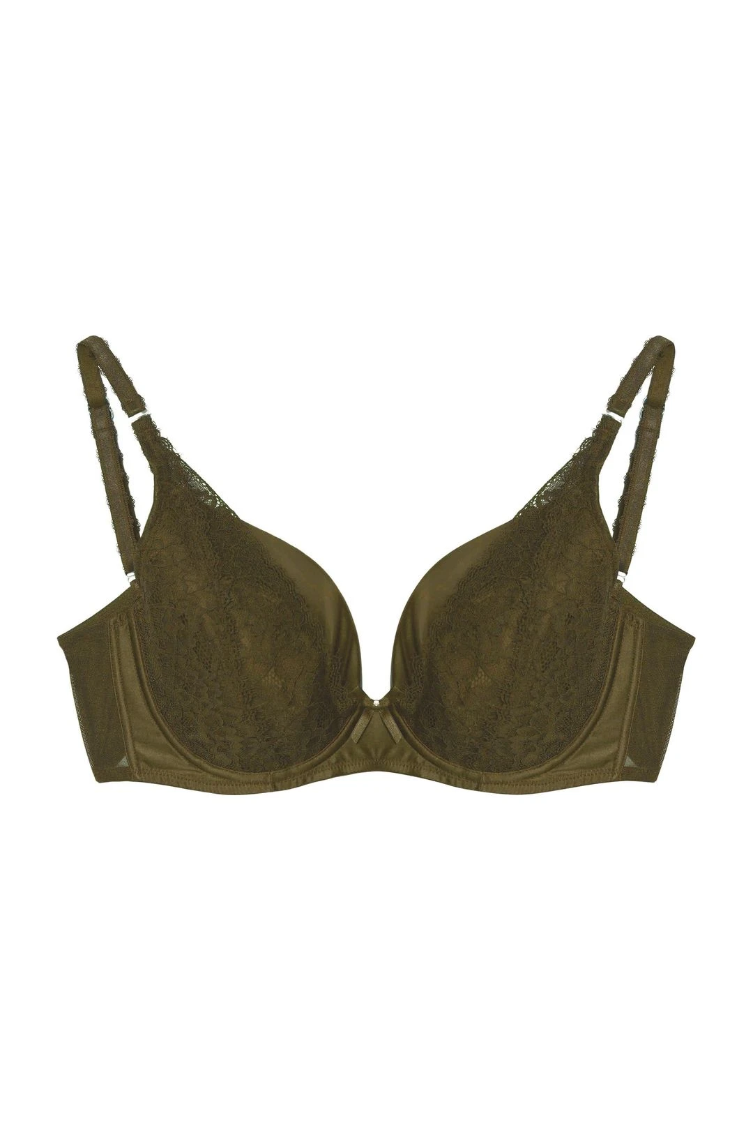- Olive satin and lace plunge bra
