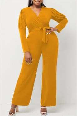 Puff Sleeve Wide-Leg Wrap Jumpsuit