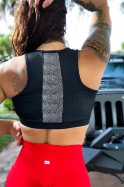 Sexy Yet Savage® Color Blocked Snake Skin Sports Bra | Black/Silver