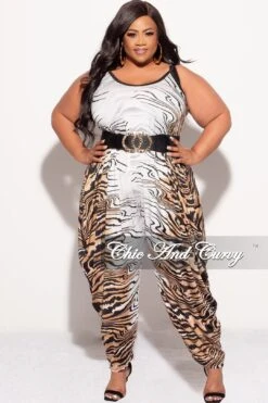 Final Sale Plus Size Harem Tank Jumpsuit In Animal Print