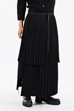 Dark Black Essentials Pleats Wrap Long Skirt // Pleated Skirt Mens / Wear It With Drop Crotch Pants