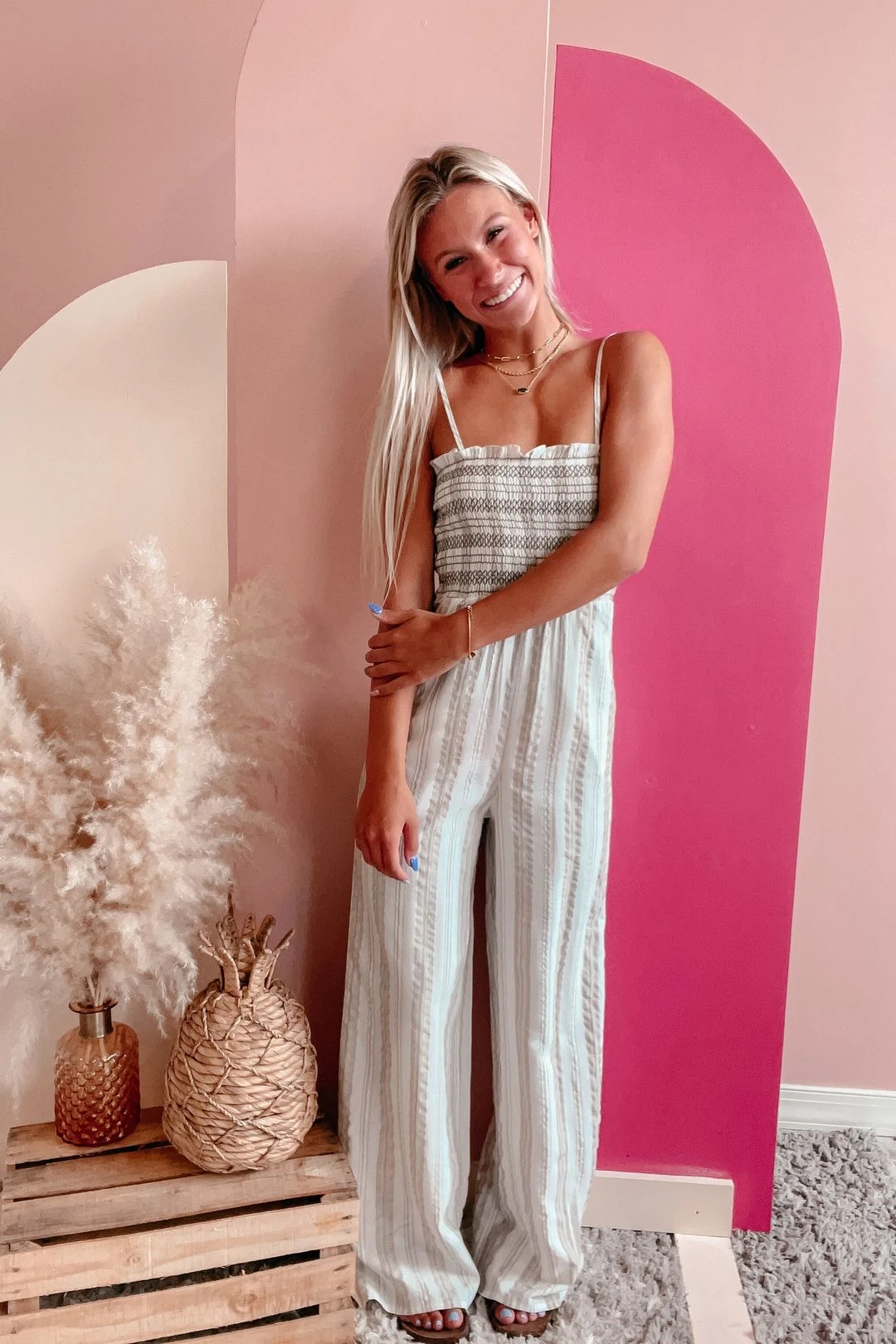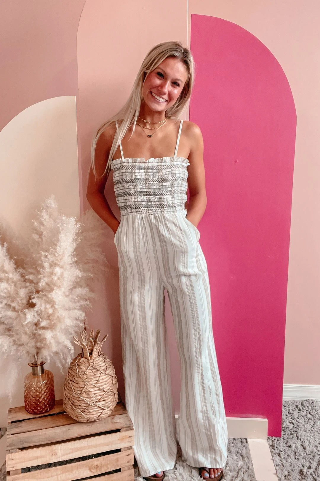 You’ll be the belle of the ball in this gorgeous Check Please One Shoulder Smocked Jumpsuit. The black, taupe, and white marbled print is absolutely stunning, and the one shoulder design is ultra-flattering. The smocked bodice ensures a perfect fit, and the wide-leg silhouette is ultra-chic. Dress this jumpsuit up with heels and statement jewelry for a showstopping look that will have everyone checking you out.