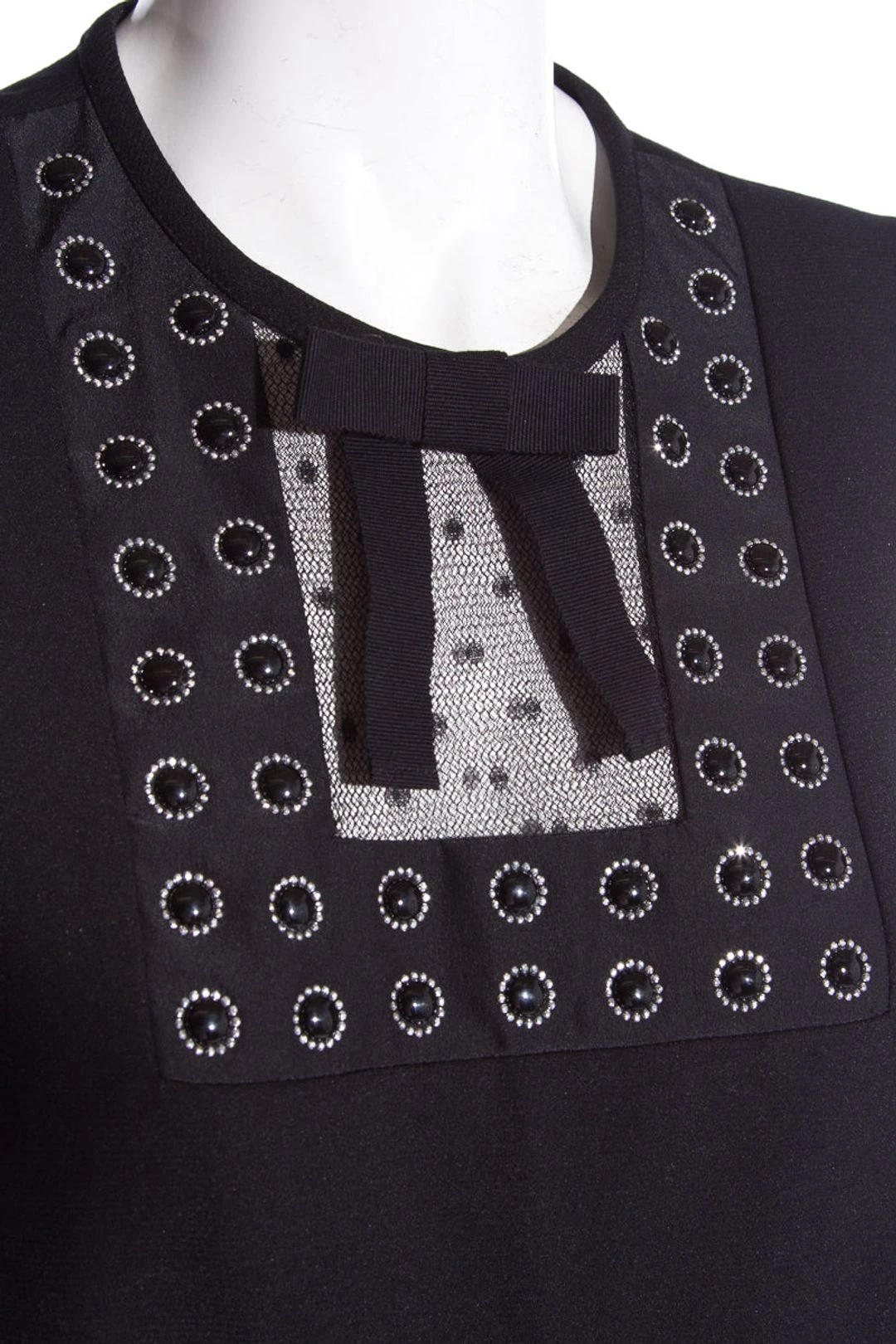 Red Valentino Black Sleeveless Jumpsuit with jeweled bib and bow detail; concealed zipper at back. This item is new with tags.