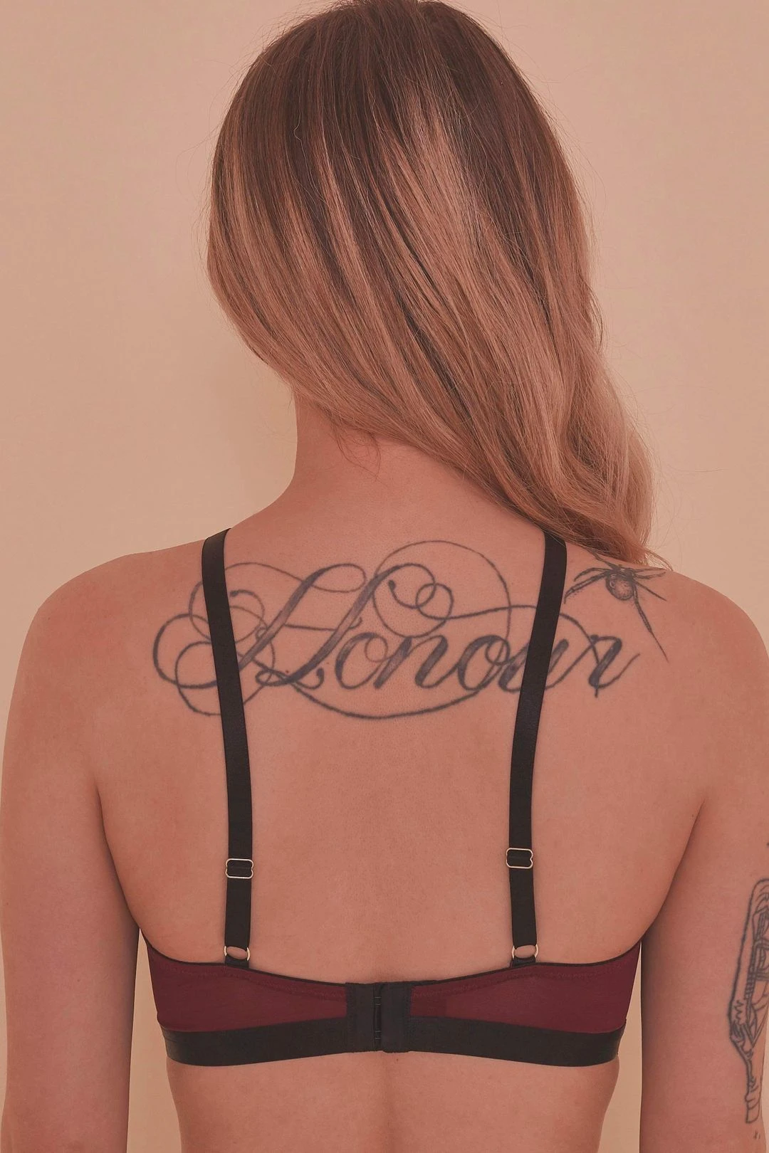 Hallie is mysterious and lurks in the dark, in a sultry dark wine with features of black, the question is, do you dare wear? This cross front bra is perfect for those special nights in.