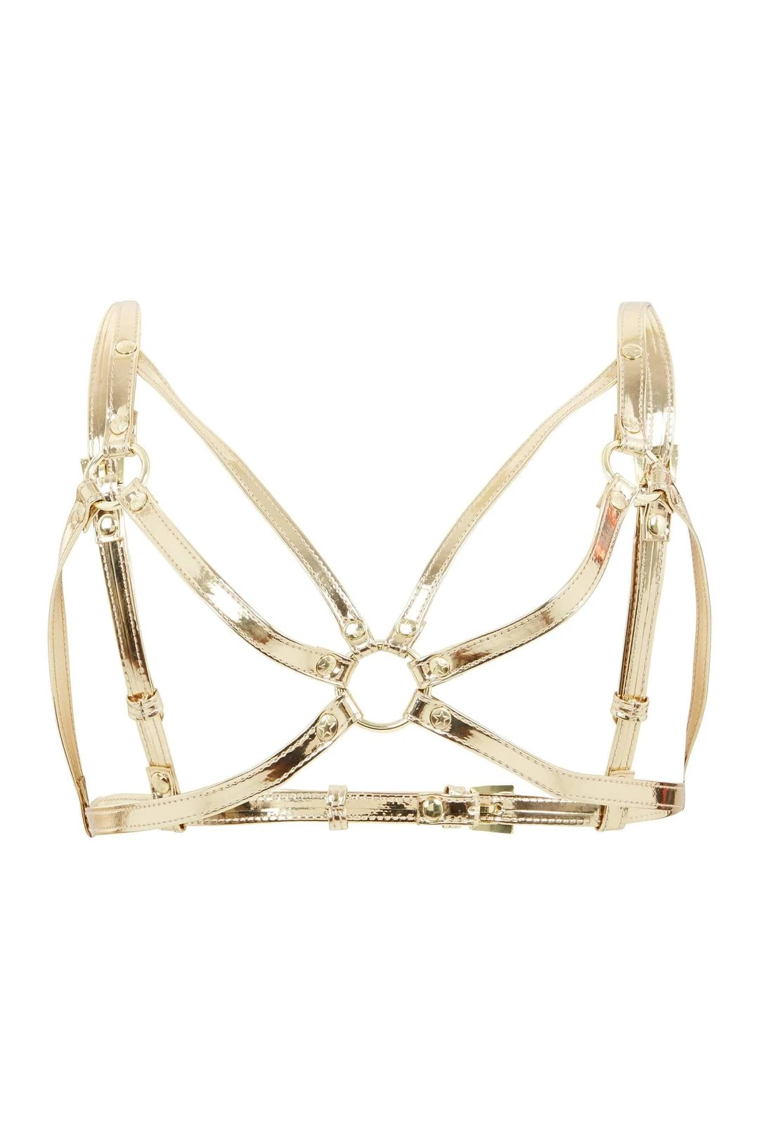 - Faux patent bust harness in gold