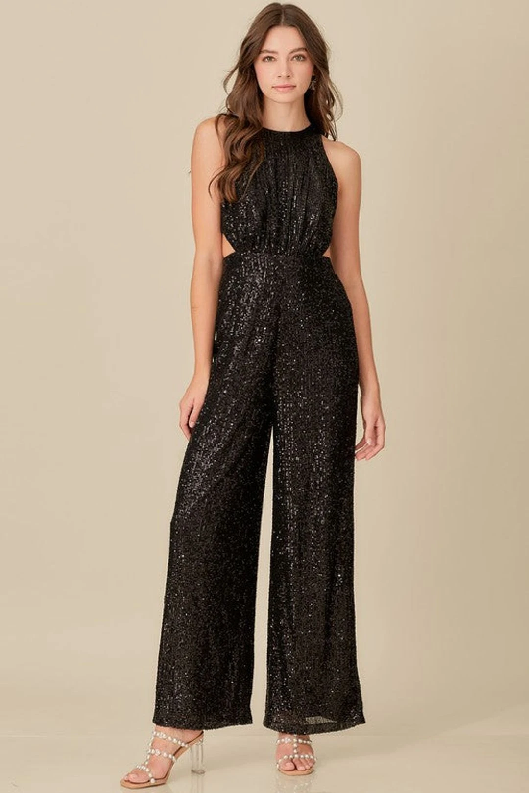 Stand out in this show-stopping jumpsuit with a high neckline, full sequin detail. Look chic and sophisticated at the next soiree in this one-of-a-kind piece, pairing it with killer heels and a bold clutch for the ultimate finishing touch.