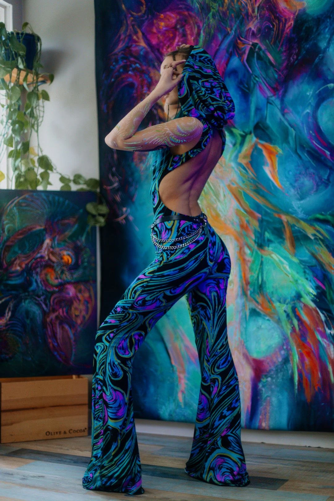 Our Ring My Bellbottom Jumpsuit is designed with an ample hood, fanciful flares and a zipper down the front so you can adjust how much heart space to shine.