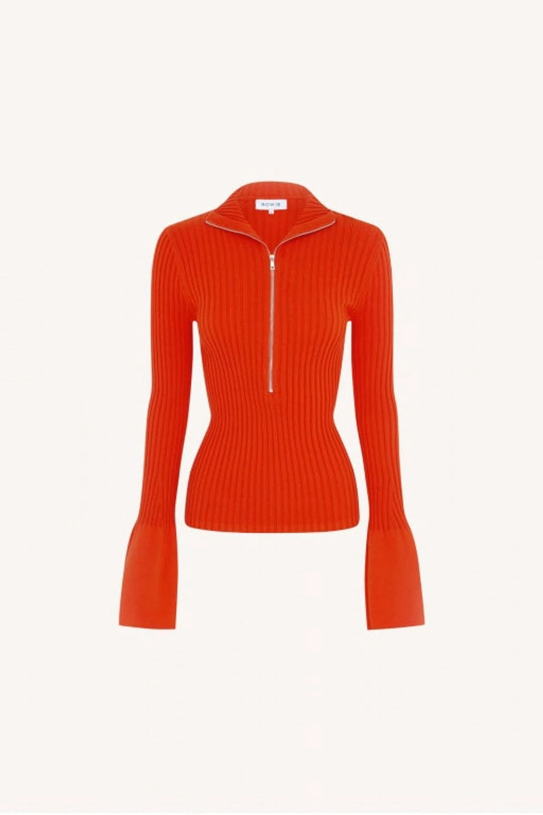 SHOP ROWIE TRAVIS ZIP KNIT TOP APEROL RED ONLINE