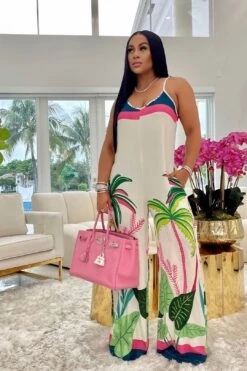 Beautiful, palm print jumpsuit with pockets. Oversized, loose and flowy fit.Â