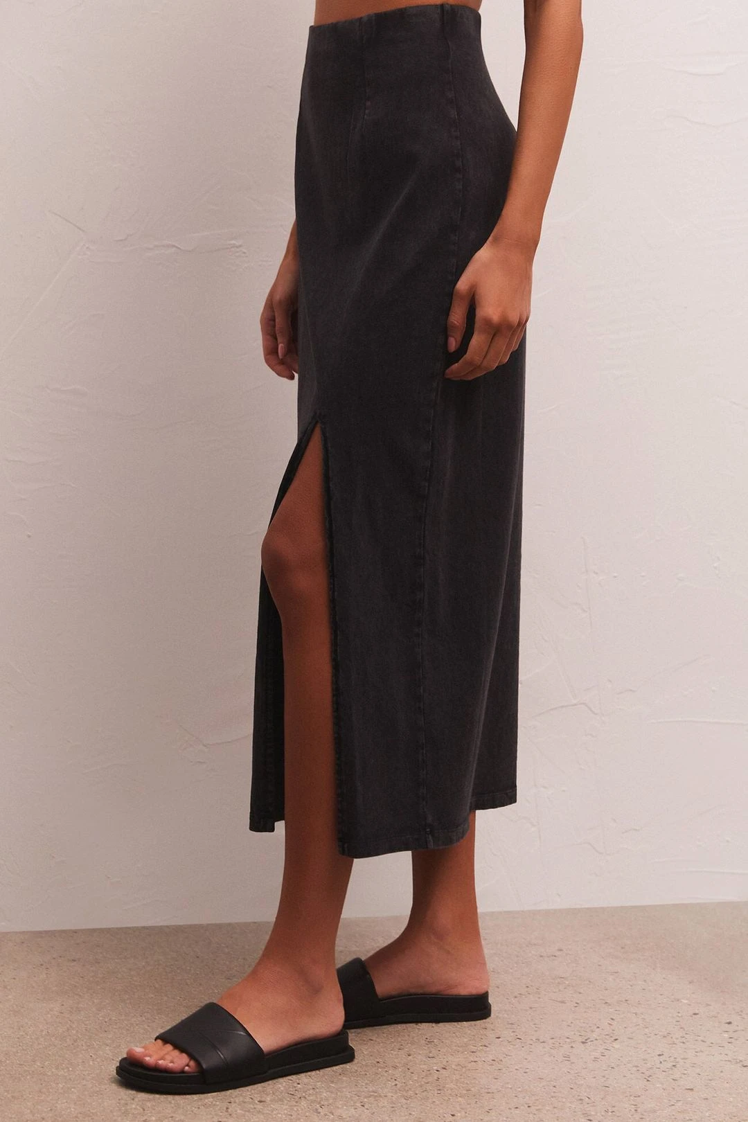 Fun and feminine, this chic Shilo Knit Skirt is made using our classic Cotton Jersey fabric, given a mineral wash for added softness, and features a smooth front with encased elastic, and a high, flirty slit to show off a little leg. You’ll dare to be bold all season in this style! Make it a set with the matching Sloane Long Sleeve Top.Ā