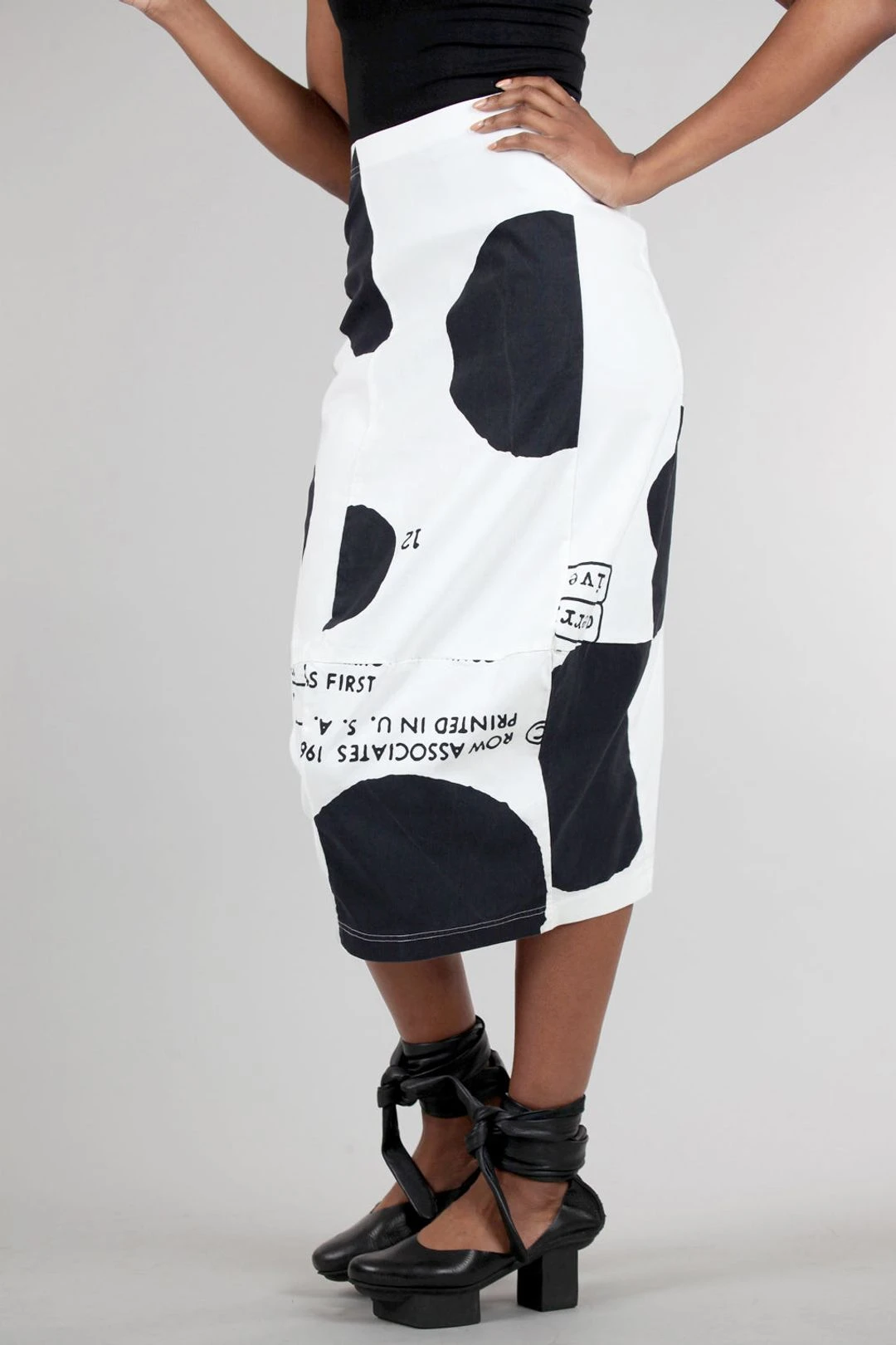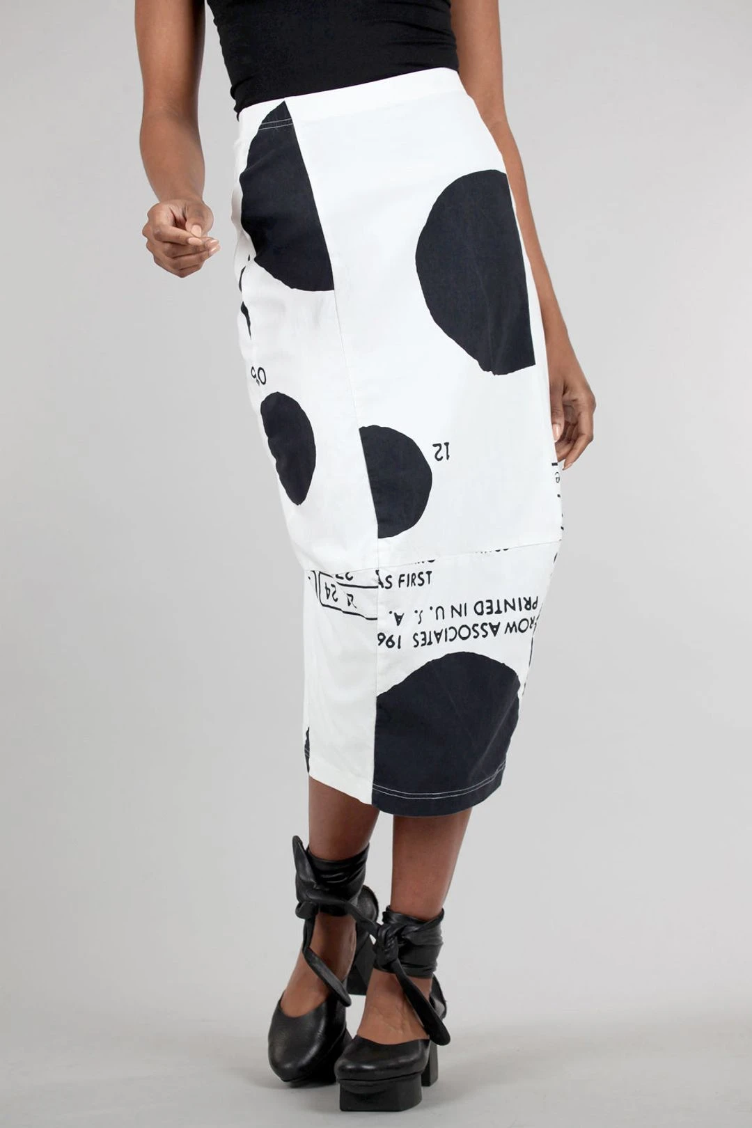 Always a hit with Rundholz fans, this longer skirt is done in the most wonderful fabric, a stretchy viscose blend with superb memory and a lightweight, sculptural hand. The lean skirt has a subtle drape effect in front with a more tailored rear view. Running true to size to slightly large.