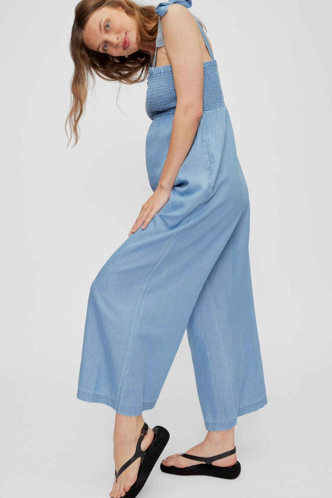 This chic Smocked Jumpsuit is a must-have for mamas-to-be! Featuring adjustable tie shoulder straps and a stretchy, smocked bodice, it’s the perfect way to flaunt your fab new baby bump. With a wide leg and ankle length, you’ll be looking super stylish whether you’re jet-setting or chillin’ at home!