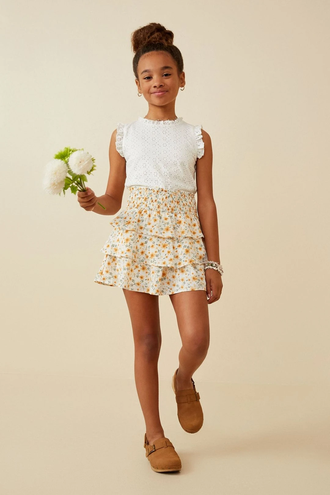 Our Smocked Waist Tiered Ditsy Floral Skirt Features