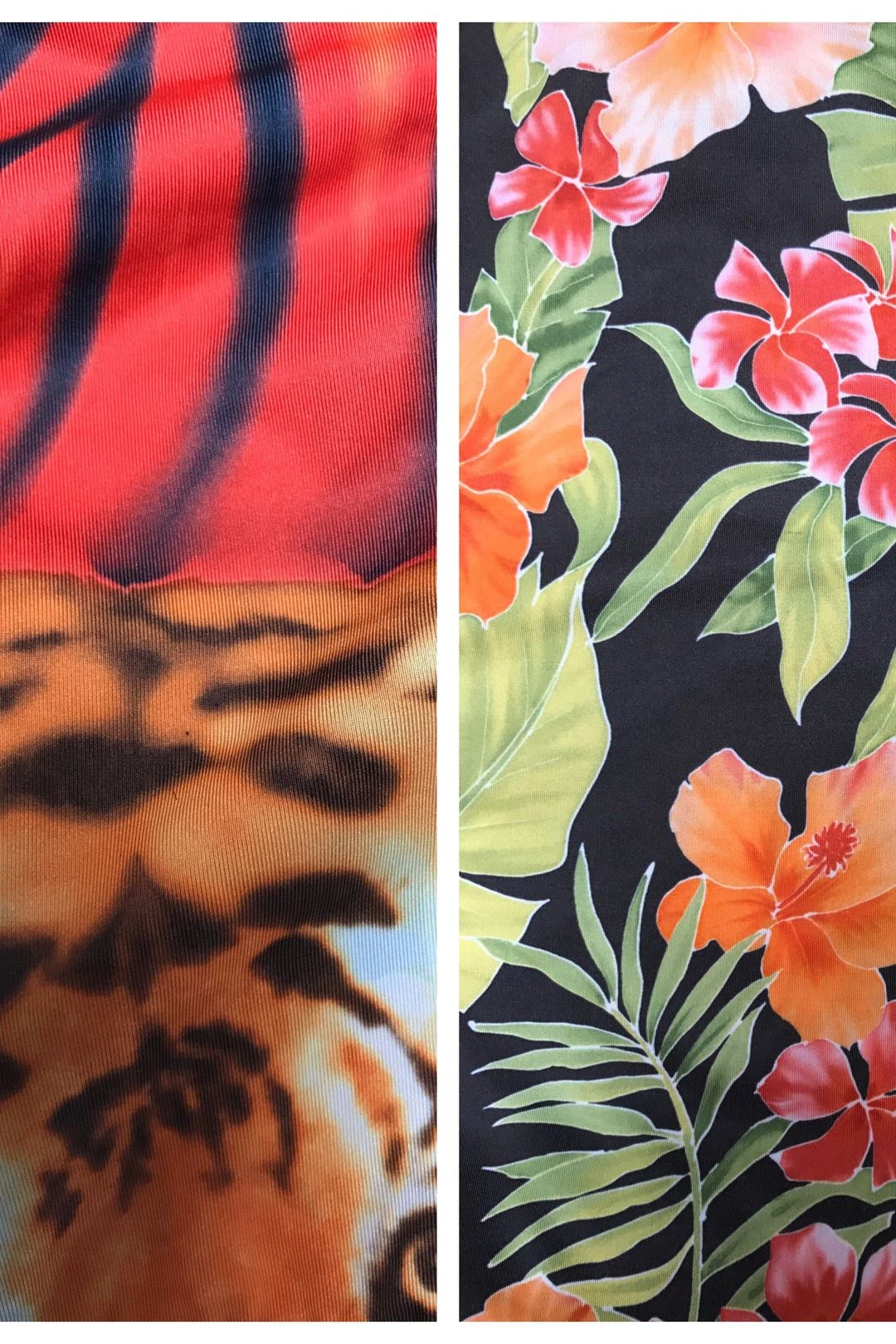 double sided with 2 different yet complimenting prints, made from recycled water bottles and spandex