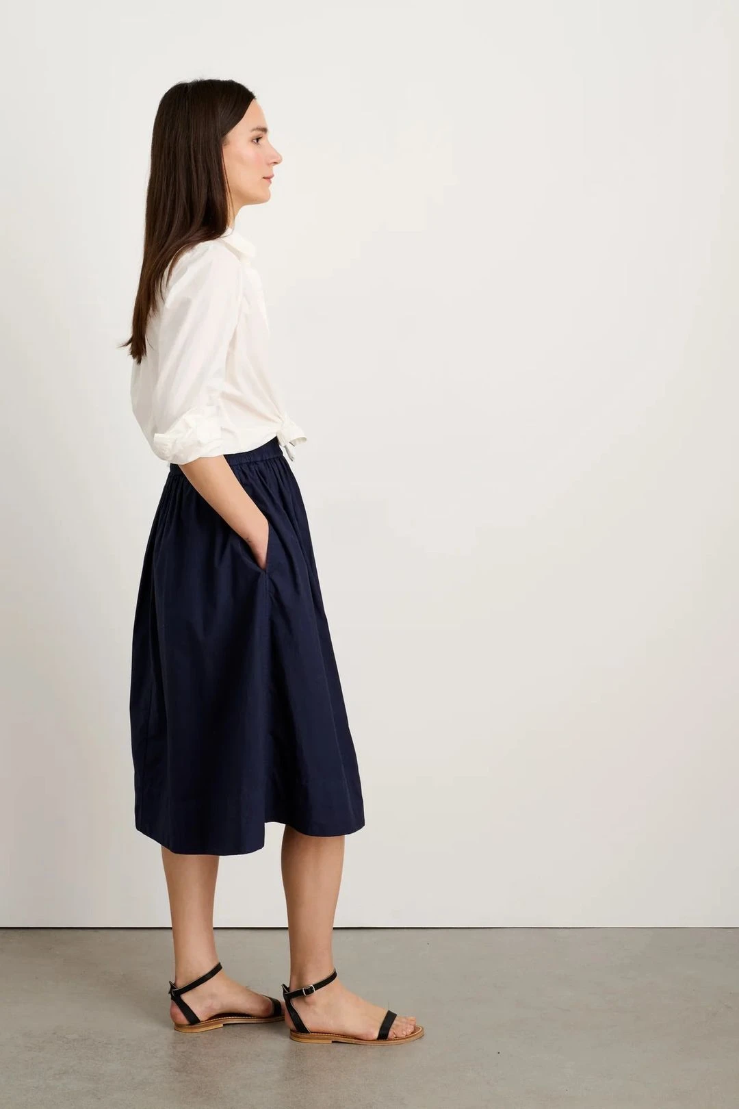 As easy as a skirt gets with the perfect midi length and— drumroll please—an elastic waistband.