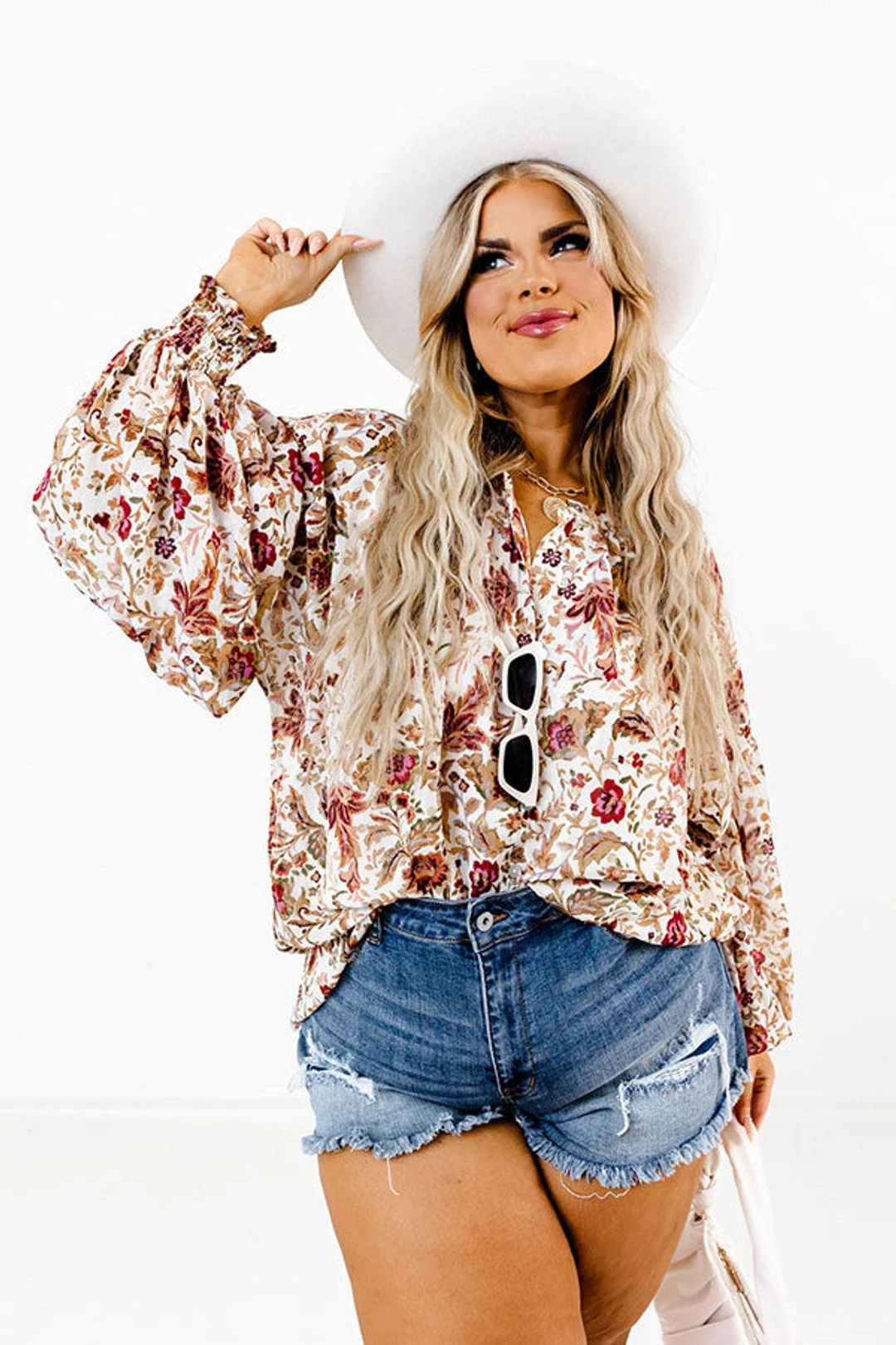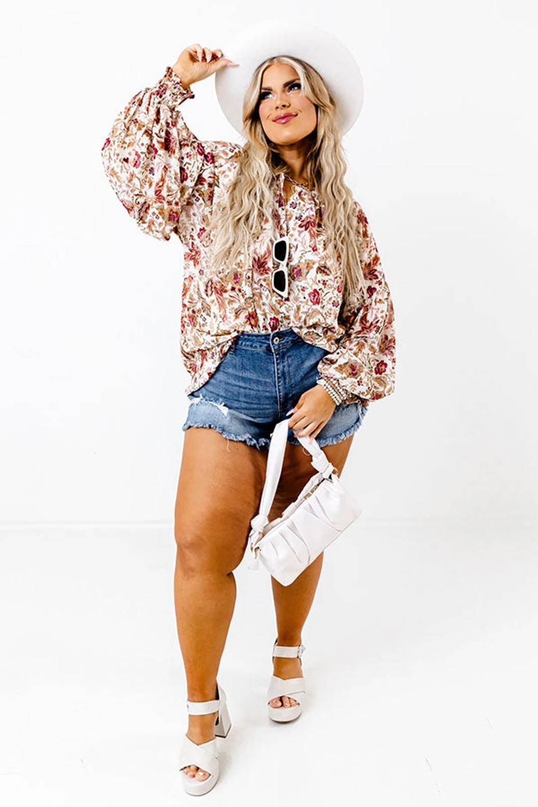 Your fall style is sure to blossom with our ‘Style Statement’ top! Features a lightweight chiffon material with a floral print, accent golden polka dots, a buttoned up with a round neckline, long loose sleeves with smocked cuffs, an attached spaghetti tank top, and a relaxed flattering silhouette that ends in a straight hemline.