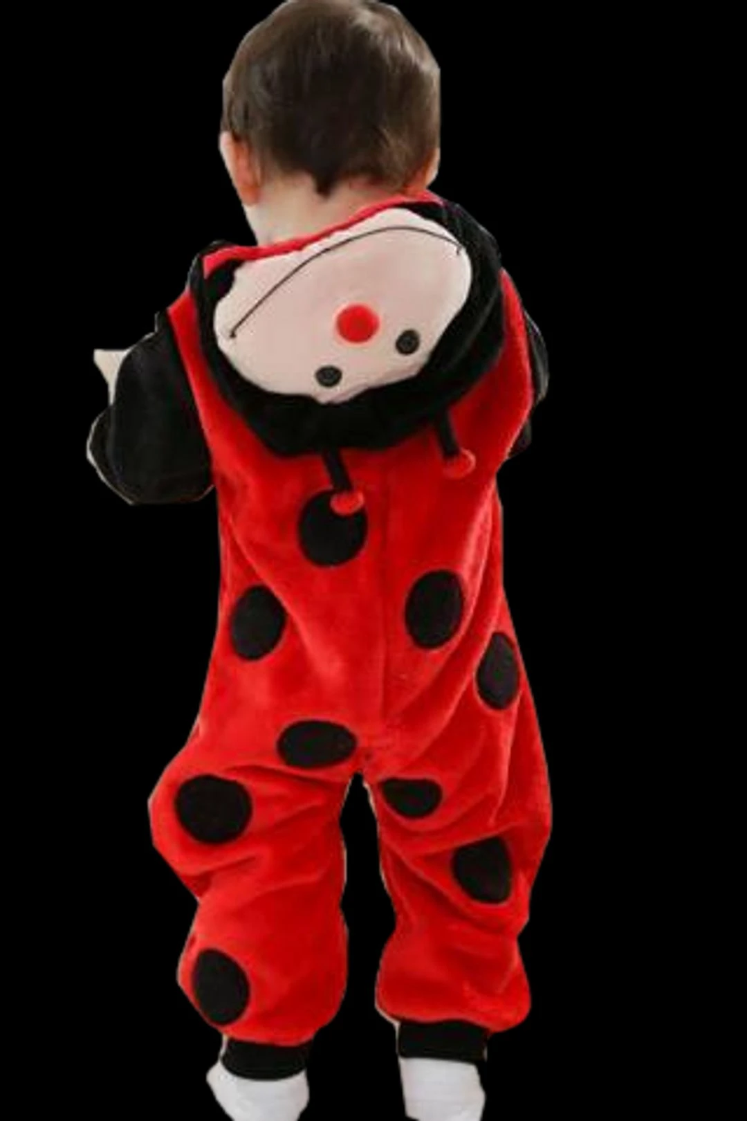 | Design and Style | Full-sleeved ladybug-style onesie with a front zipper, elastic wrist and ankle cuffs, and a hood with symmetrical features |