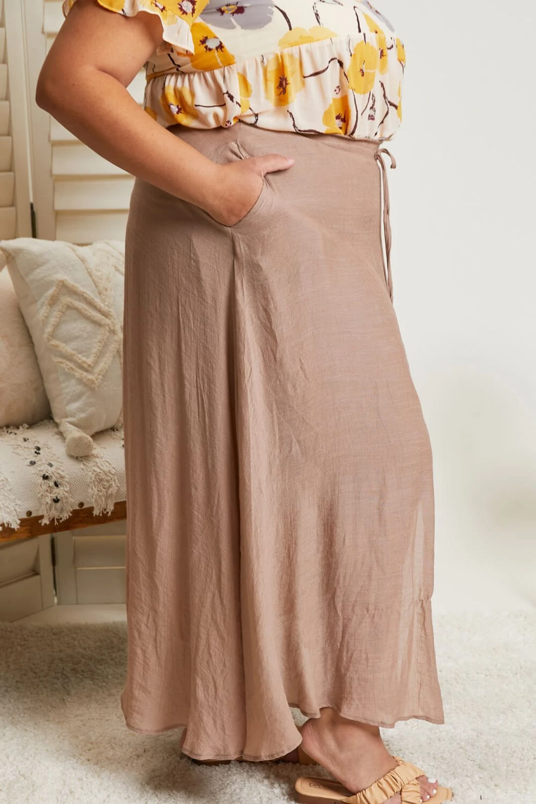 This maxi skirt can be anything you want it to be with its simple and versatile design. The slit in the front adds a daring detail that will make you swoon. Functionality wasn’t forgotten in the design of the skirt, either, since the skirt is lined and has an elastic waist with a working drawstring.