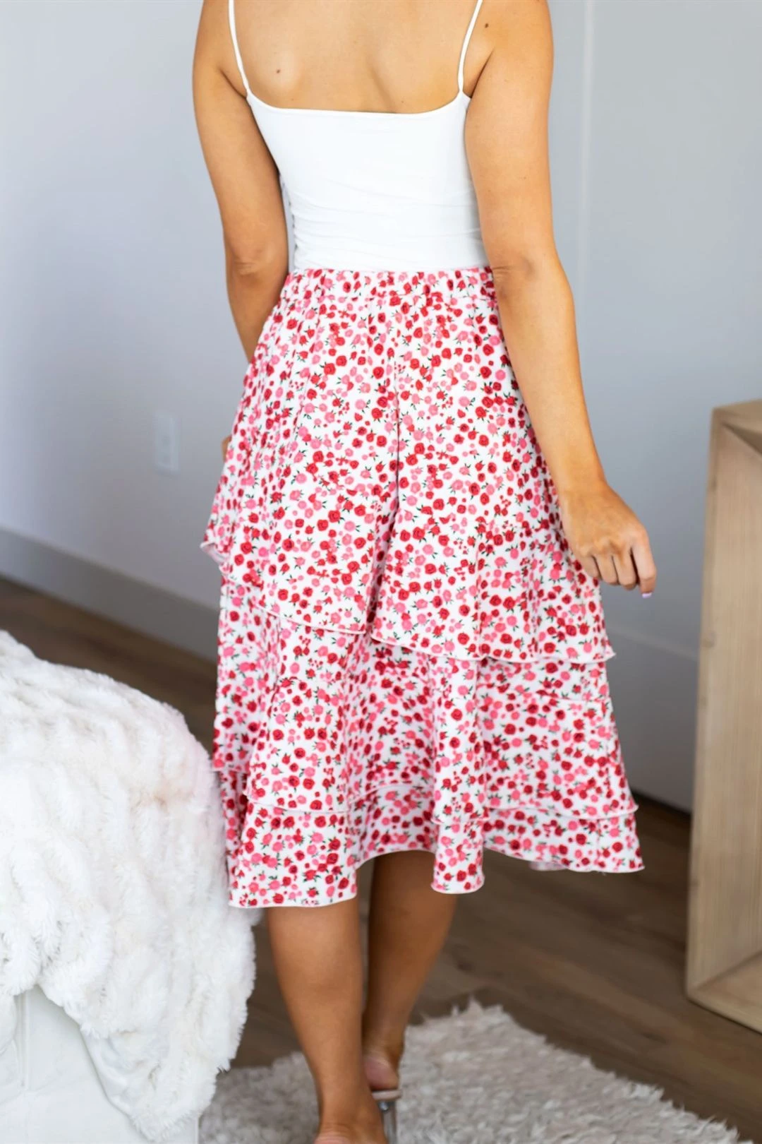 Don’t just take our word for it – our model, who is 5’5″ and wears a size 2/4, looks stunning in the small size. So what are you waiting for? Add the Taite Ruffle Skirt to your cart and get ready to turn heads wherever you go!