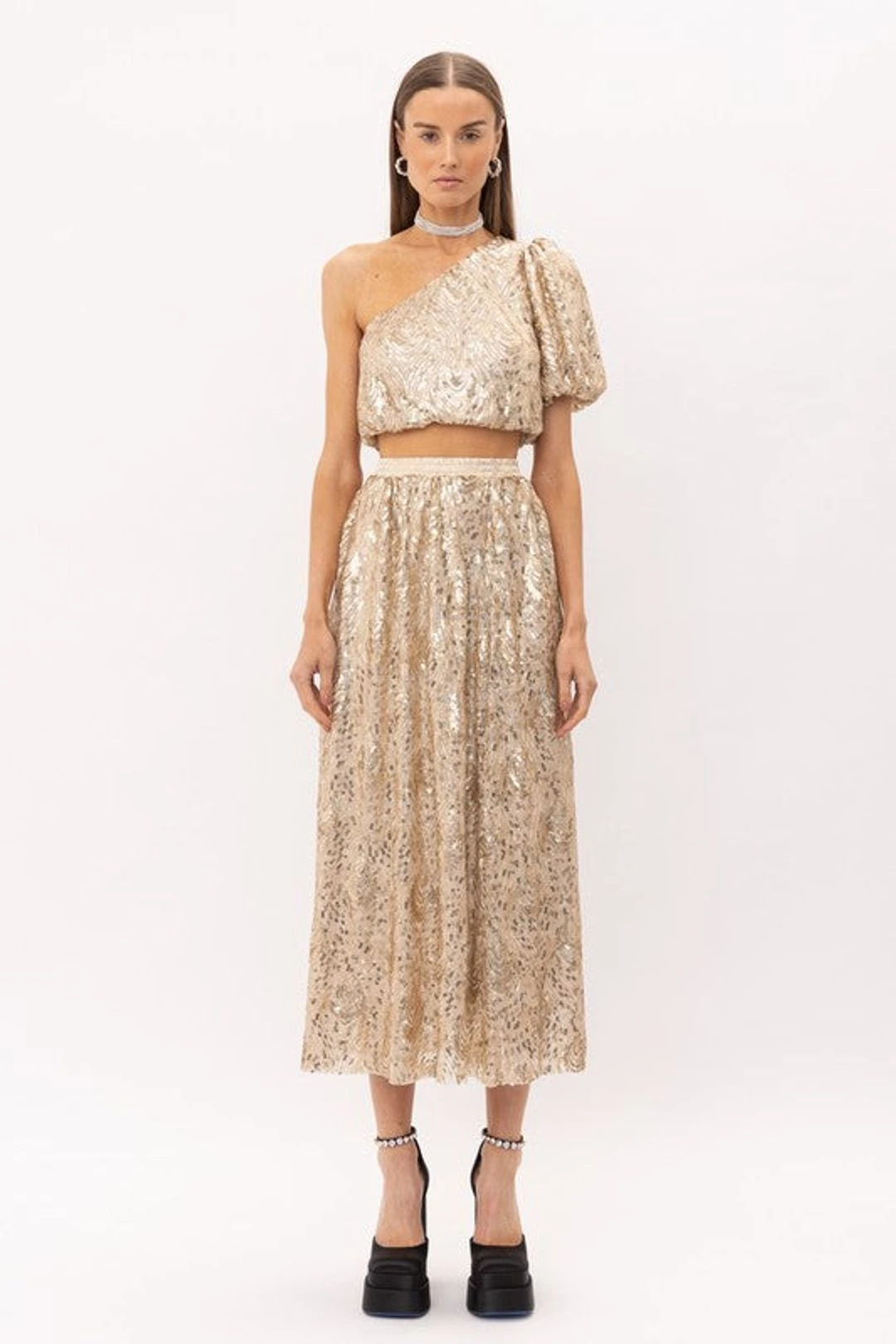 The Gianna Sequin Midi Skirt features