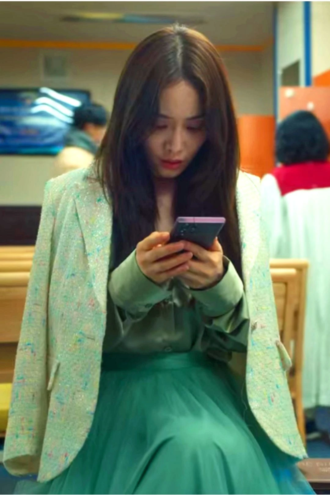 Special mention to this pretty and artistic top and skirt set that is inspired by the outfit that she was spotted wearing in Episode 12 of “The Glory” where she was exposed for her good girl façade.