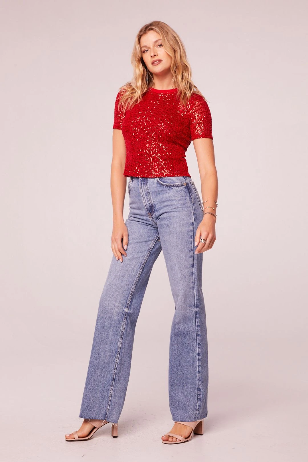 Steal the show with the shimmer and deep color of The Lovers t-shirt style top.