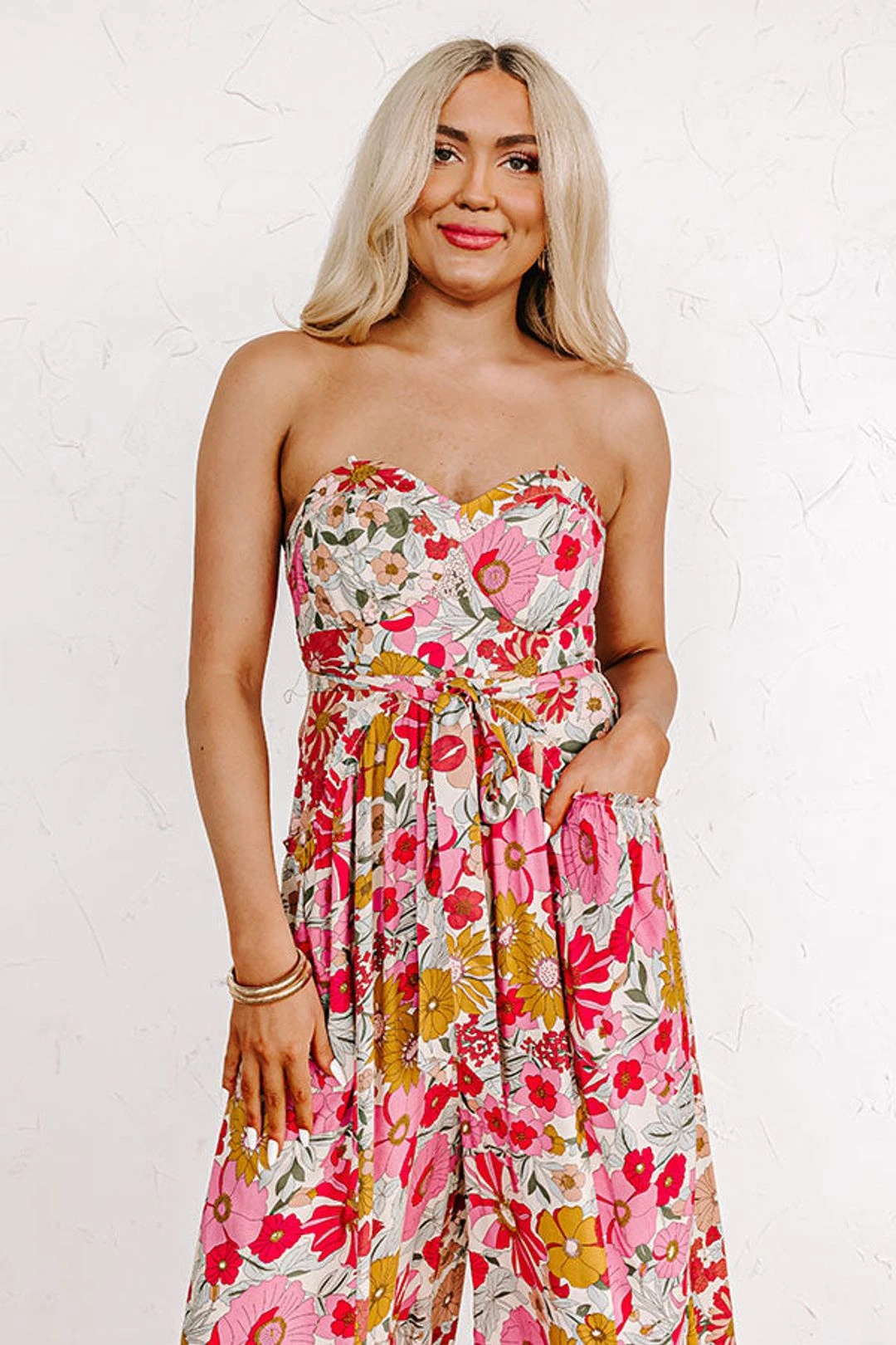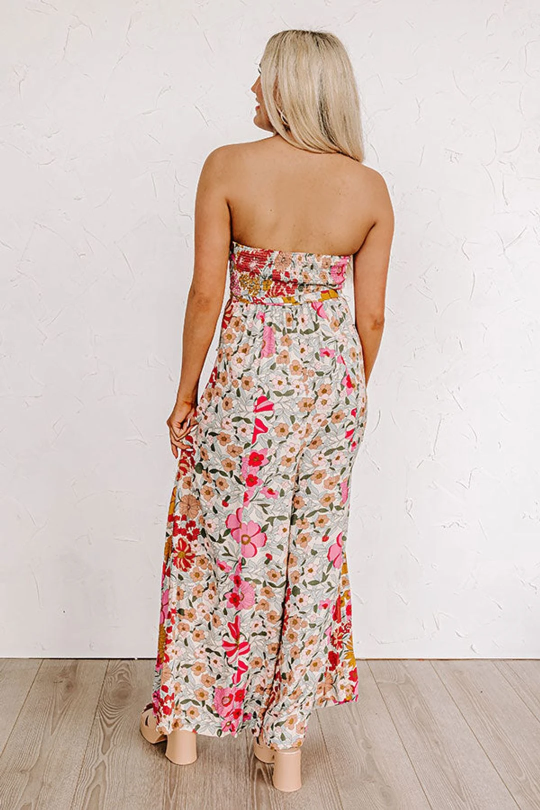 – For a trendy floral look, pair this gorgeous jumpsuit with your favorite pair of heels!
