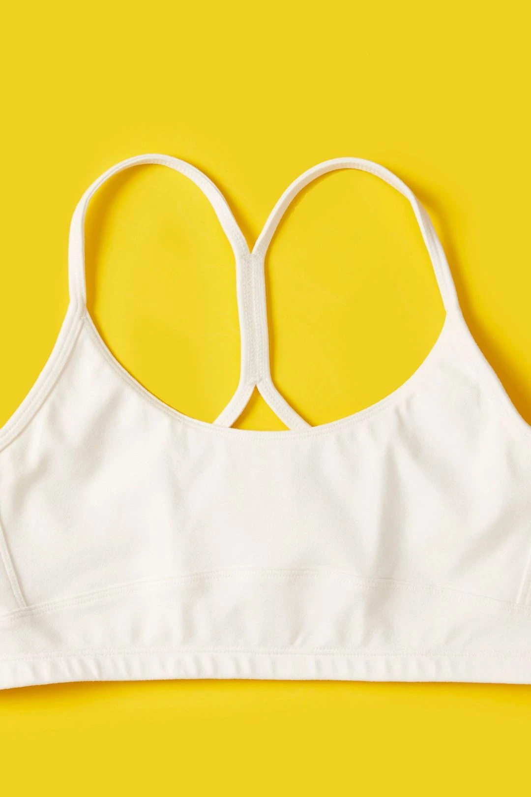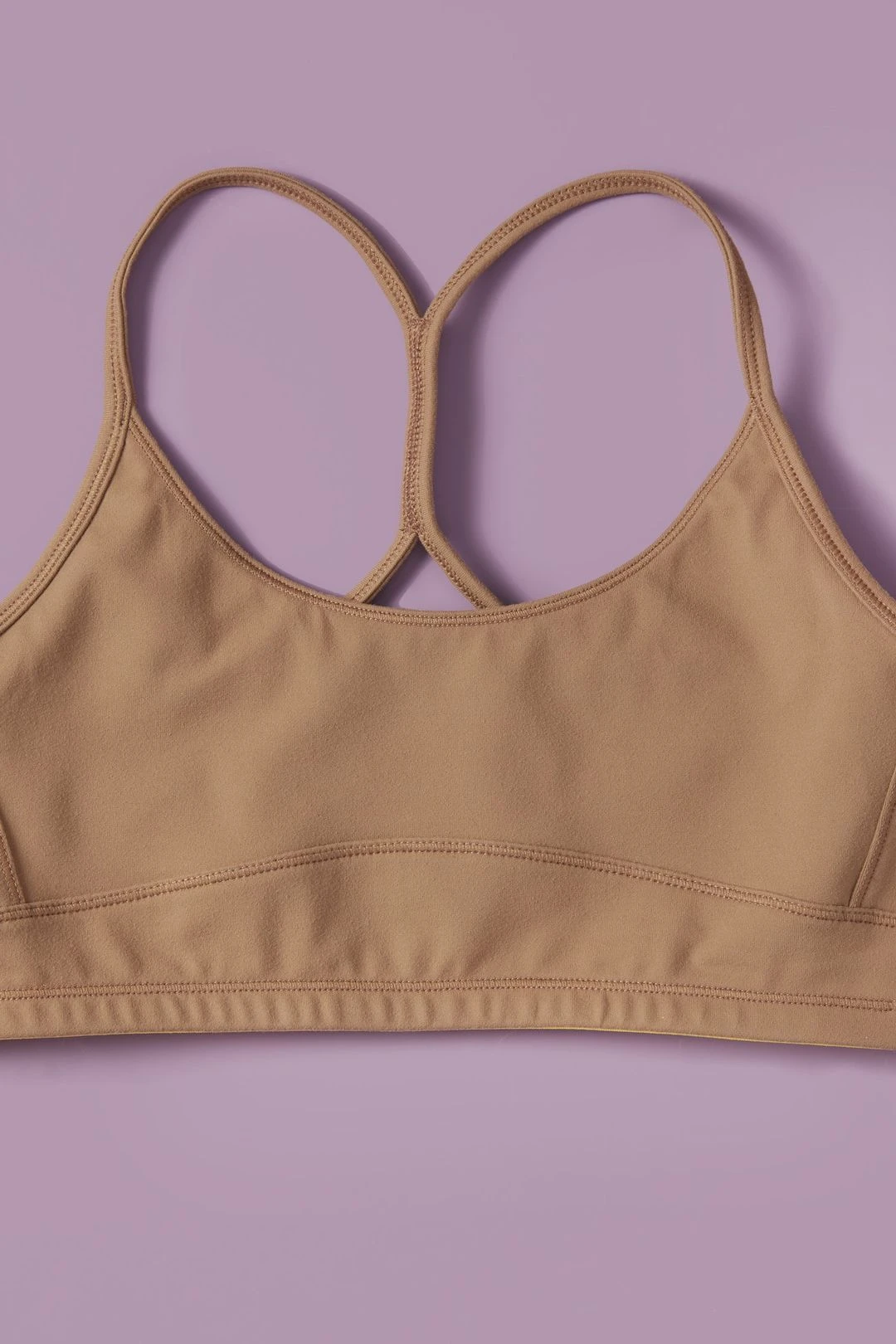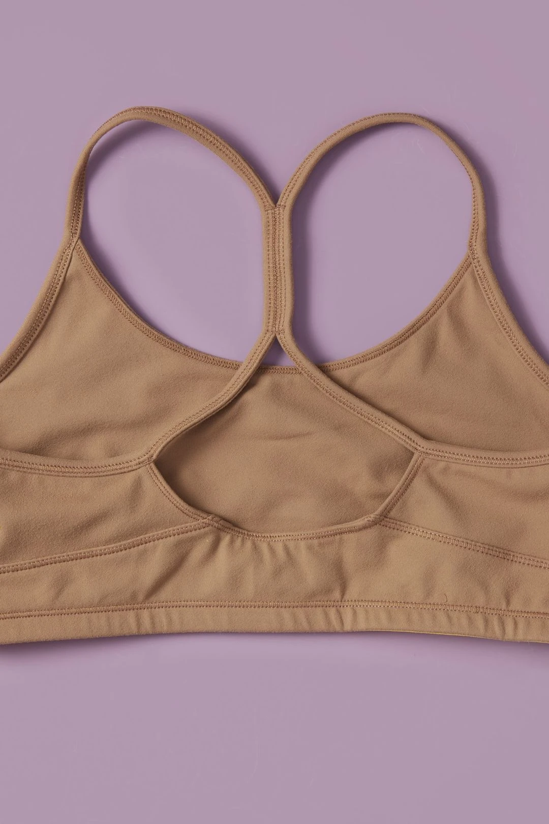 Designed with an innovative open back, this bra is our newest take on the racerback style. Perfect for dancers and gymnasts alike, the Tink’s design ensures it fits perfectly beneath a leotard. This is one of our signature hybrid styles, meaning it’s made to fit slightly tighter – if your daughter in between sizes, we recommend sizing up for a less snug fit.