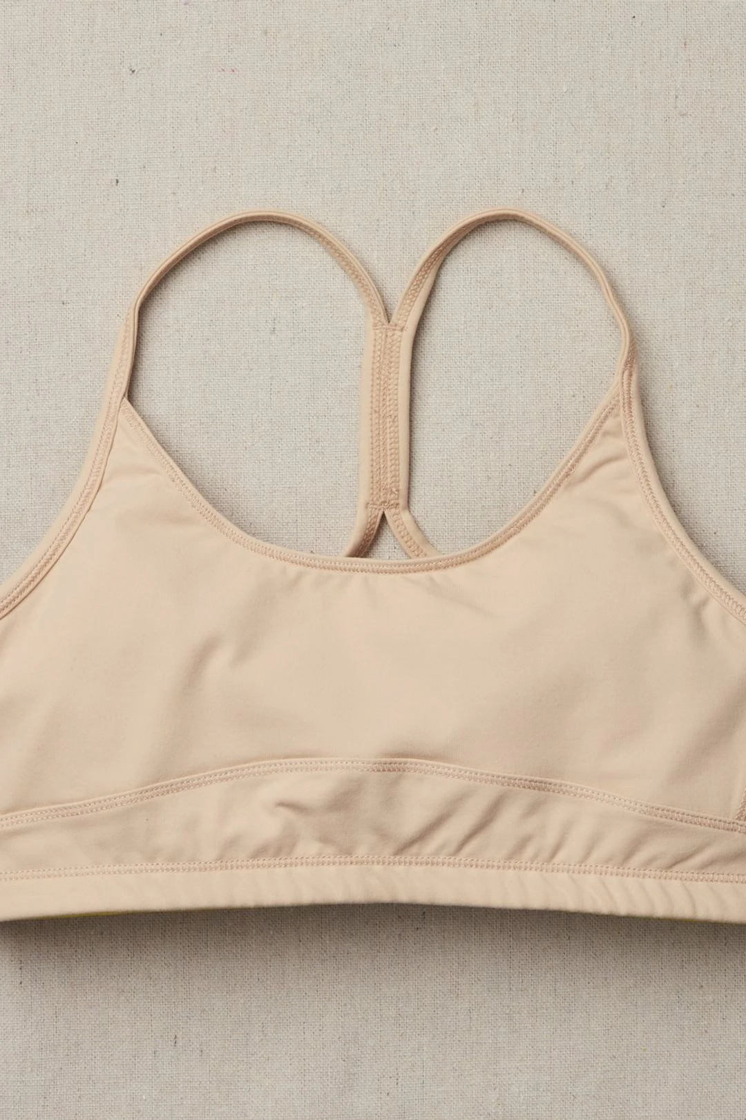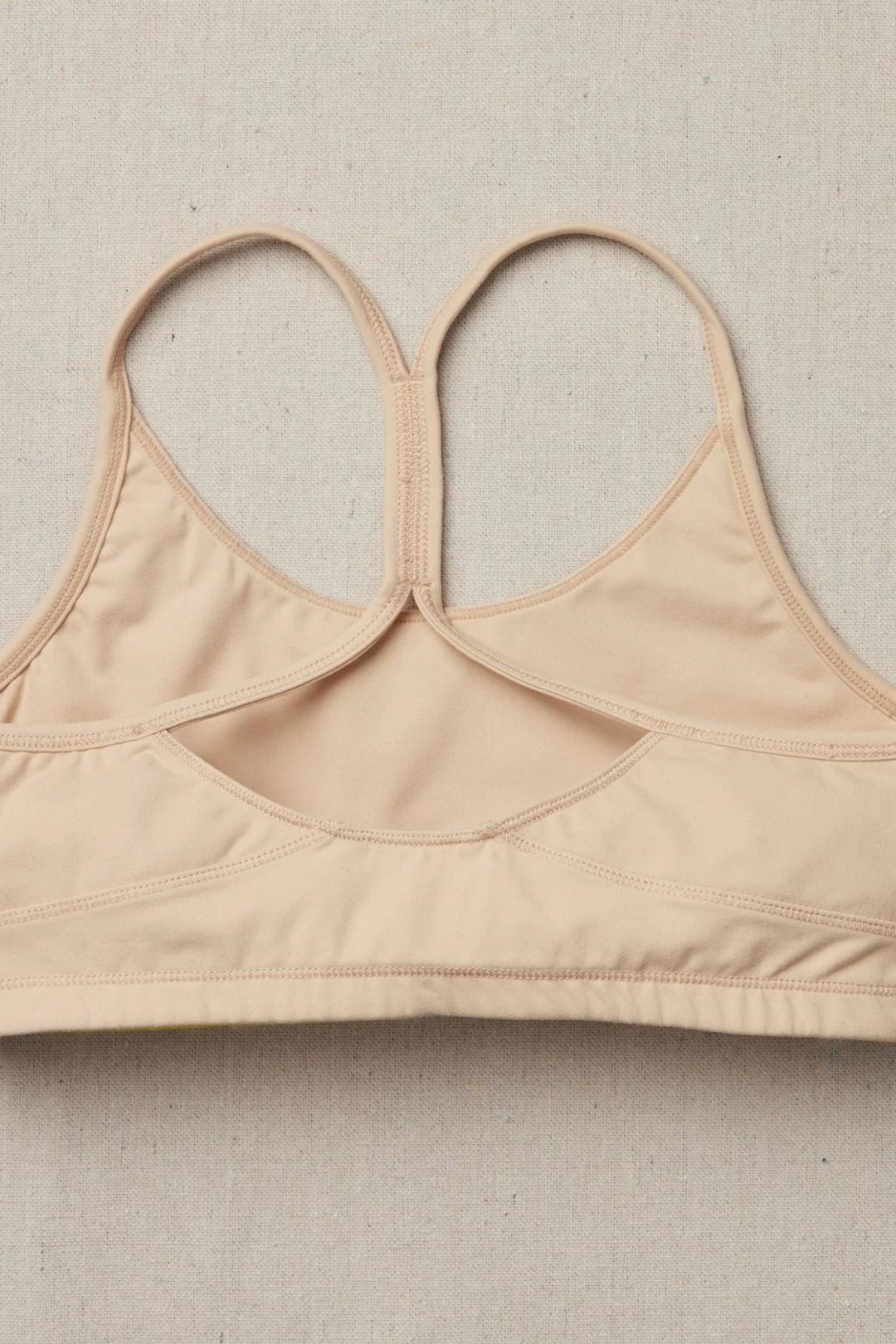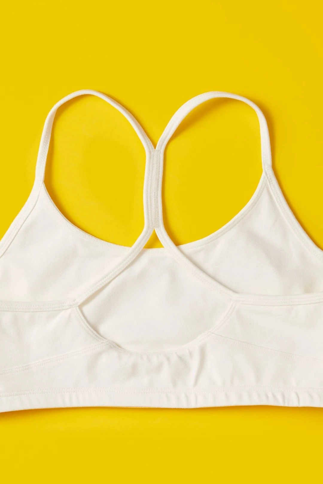 Designed with an innovative open back, this bra is our newest take on the racerback style. Perfect for dancers and gymnasts alike, the Tink’s design ensures it fits perfectly beneath a leotard. This is one of our signature hybrid styles, meaning it’s made to fit slightly tighter – if your daughter in between sizes, we recommend sizing up for a less snug fit.