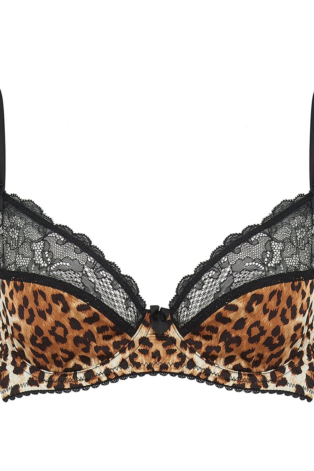 Tutu Tatou offers subtle placement of Leopard print in a luxe silk with chic black lace. The non-padded plunge bra offers our plunge shape and perfect cleavage without the addition of padding for a more subtle lift complete with adjustable silk straps for comfort.