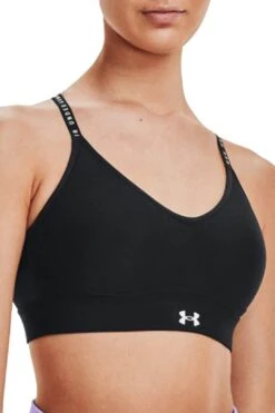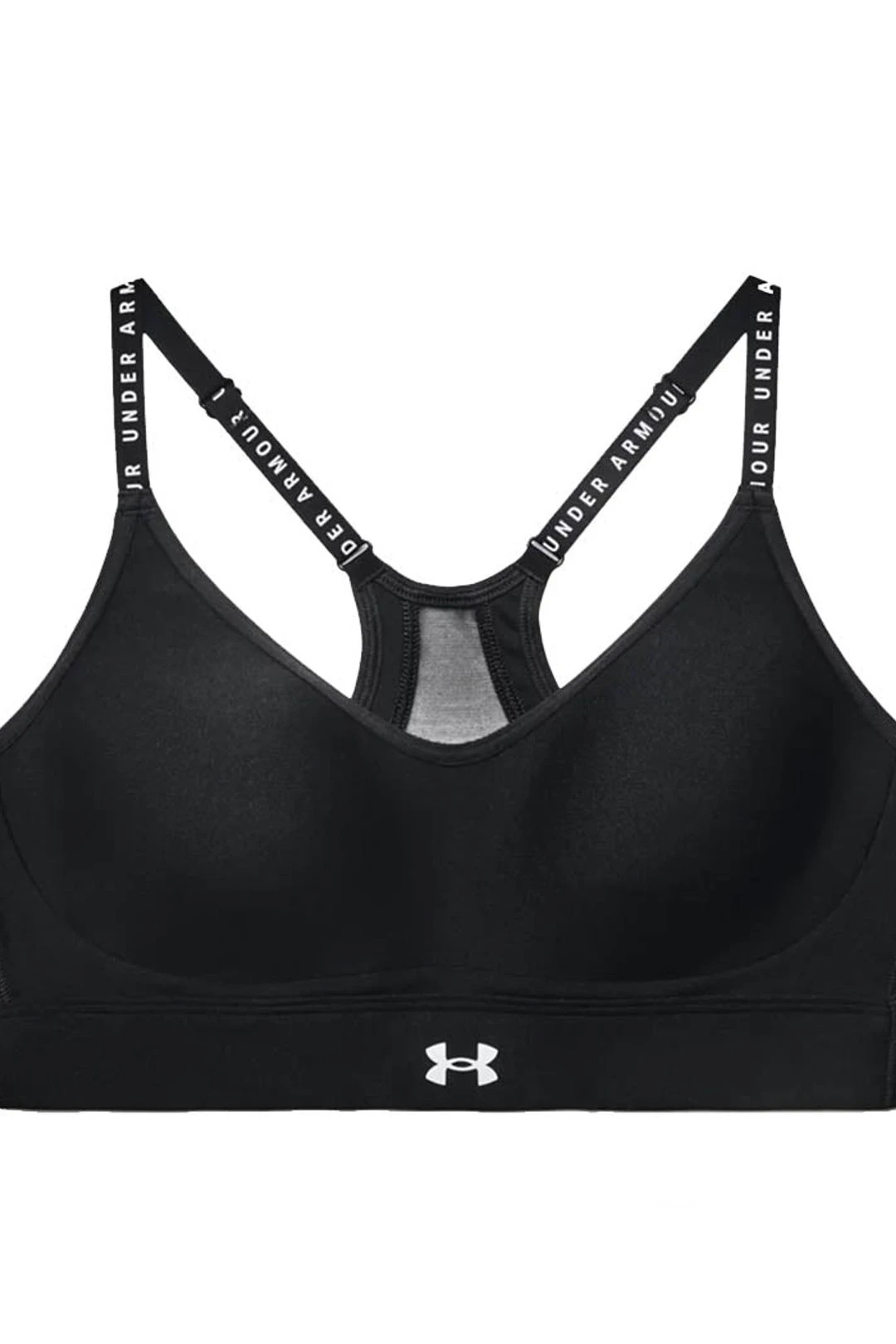 The Under Armour Infinity sports bra is a special style you won’t find anywhere else. This sports bra is made of lightweight HeatGear® fabric with color contrast details. The material is moisture wicking, quick drying, and anti-odor to keep you cool and comfortable. For a more aerodynamic feel, the bra’s cups have molded, PU injected, one-piece padding in a figure-8 pattern. This padding gives you structure, shape, and strong support. A soft, encased elastic waistband keeps you secure. The keyhole back design and mesh panels provide airflow for a breathable effect. Thin, adjustable elastic straps hold you in place.