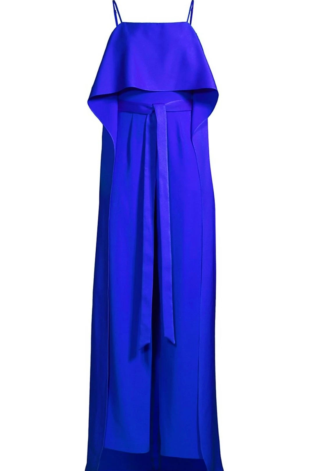 A sleek panel along the side and front elongates this Valeria jumpsuit from Black Halo. Cut in a wide-leg silhouette, this silhouette is cinched by a self-tie belt.