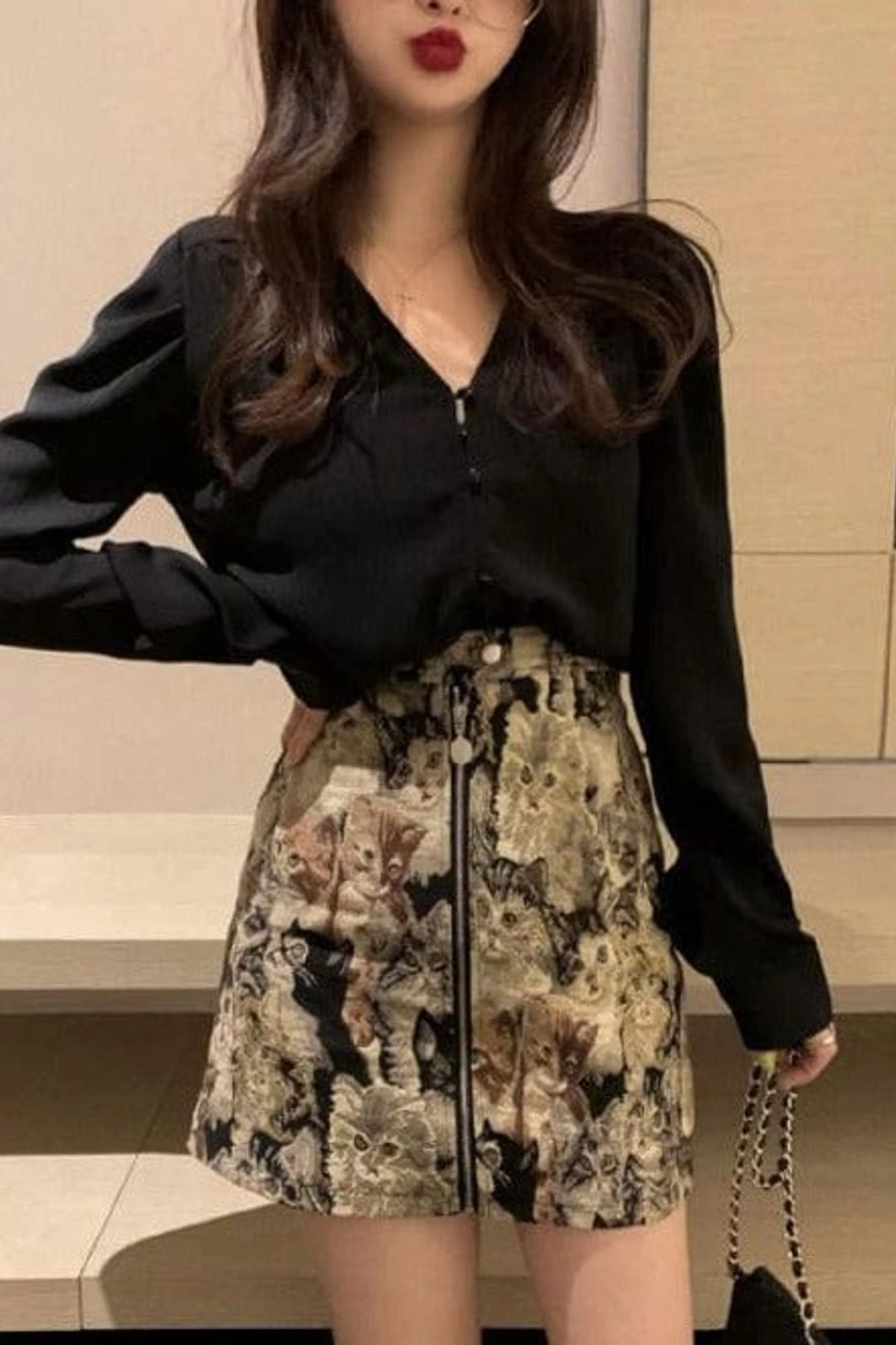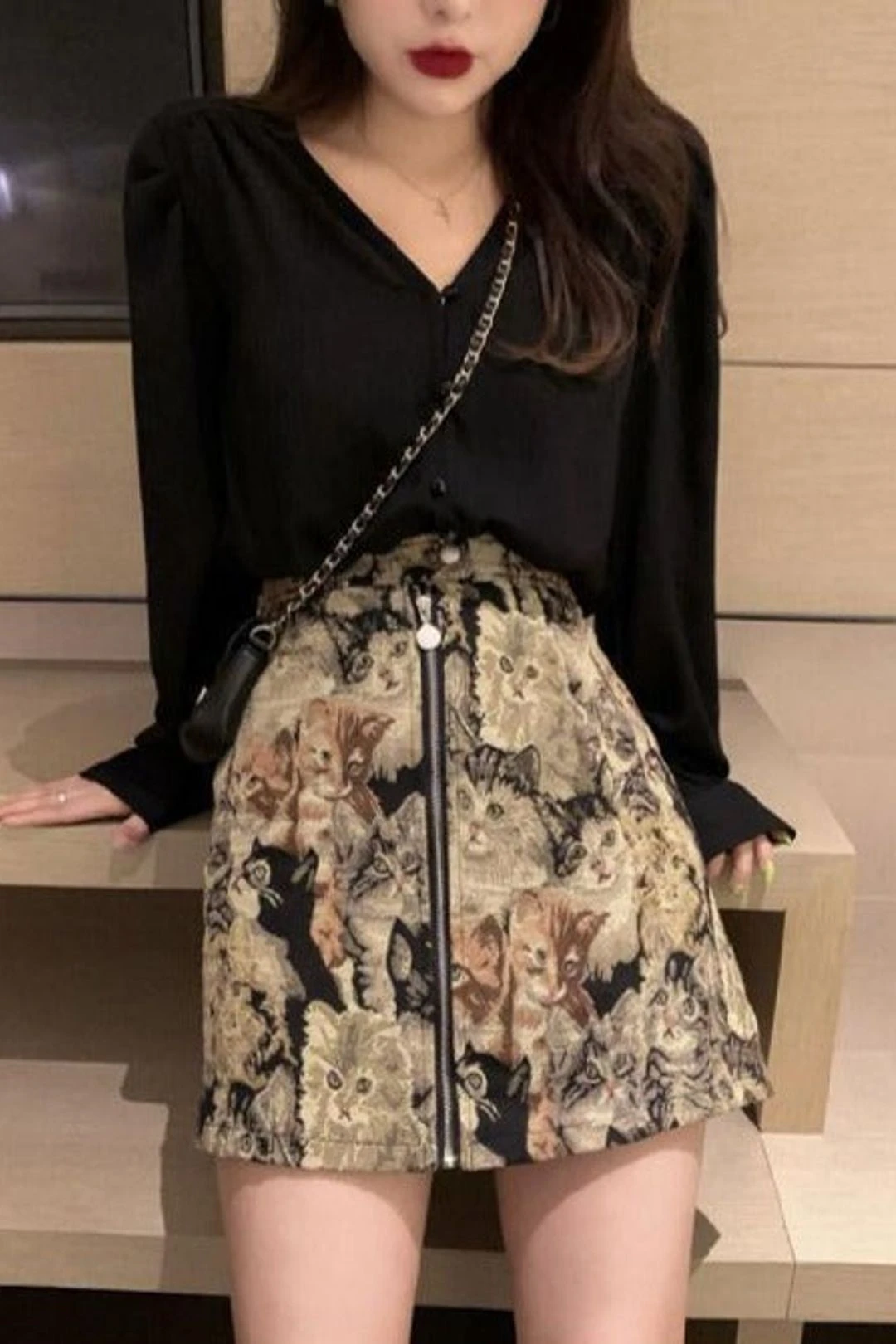 Vintage Cute Tapestry Cats Pattern Tube Mini Skirt