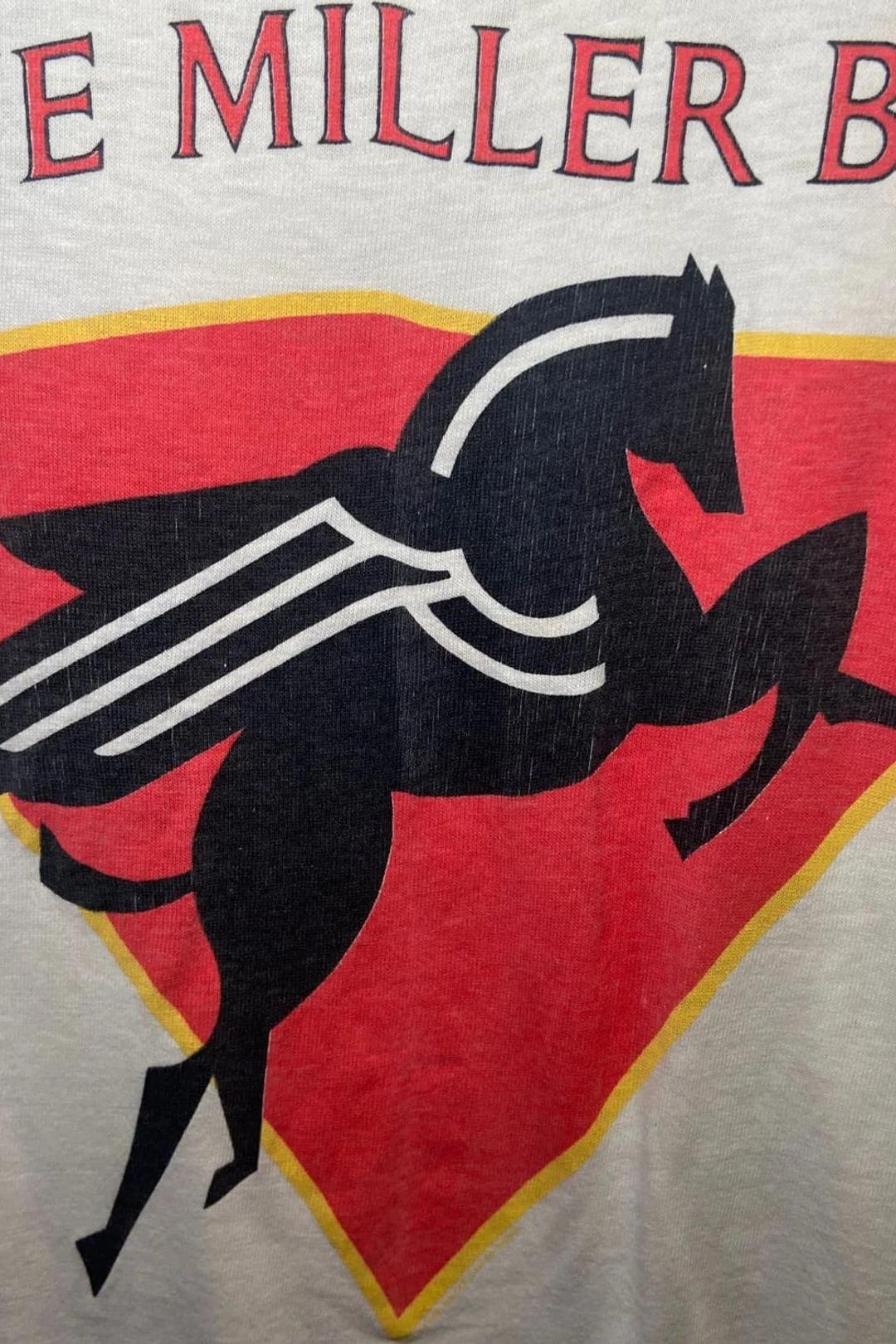 Show off that hot bod with this vintage Steven Miller Band muscle tank! The front features the iconic Pegasus logo within an inverted triangle, making a bold statement. Very thin fabric, ideal for layering over another shirt or wearing with a cute bralette underneath. The classic white fabric has a lived-in look, complete with some unique stains (as shown in pictures). Represent one of the biggest classic rock bands of the 70s and 80s with this rare piece of musical history.