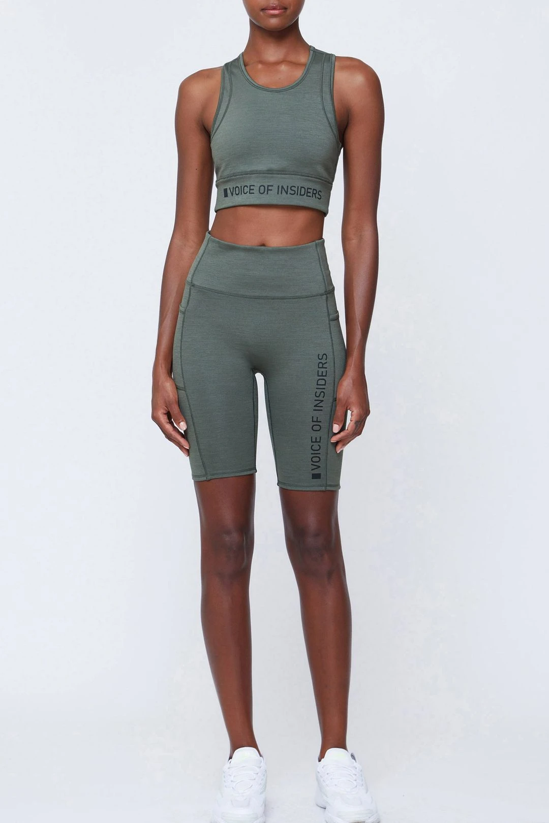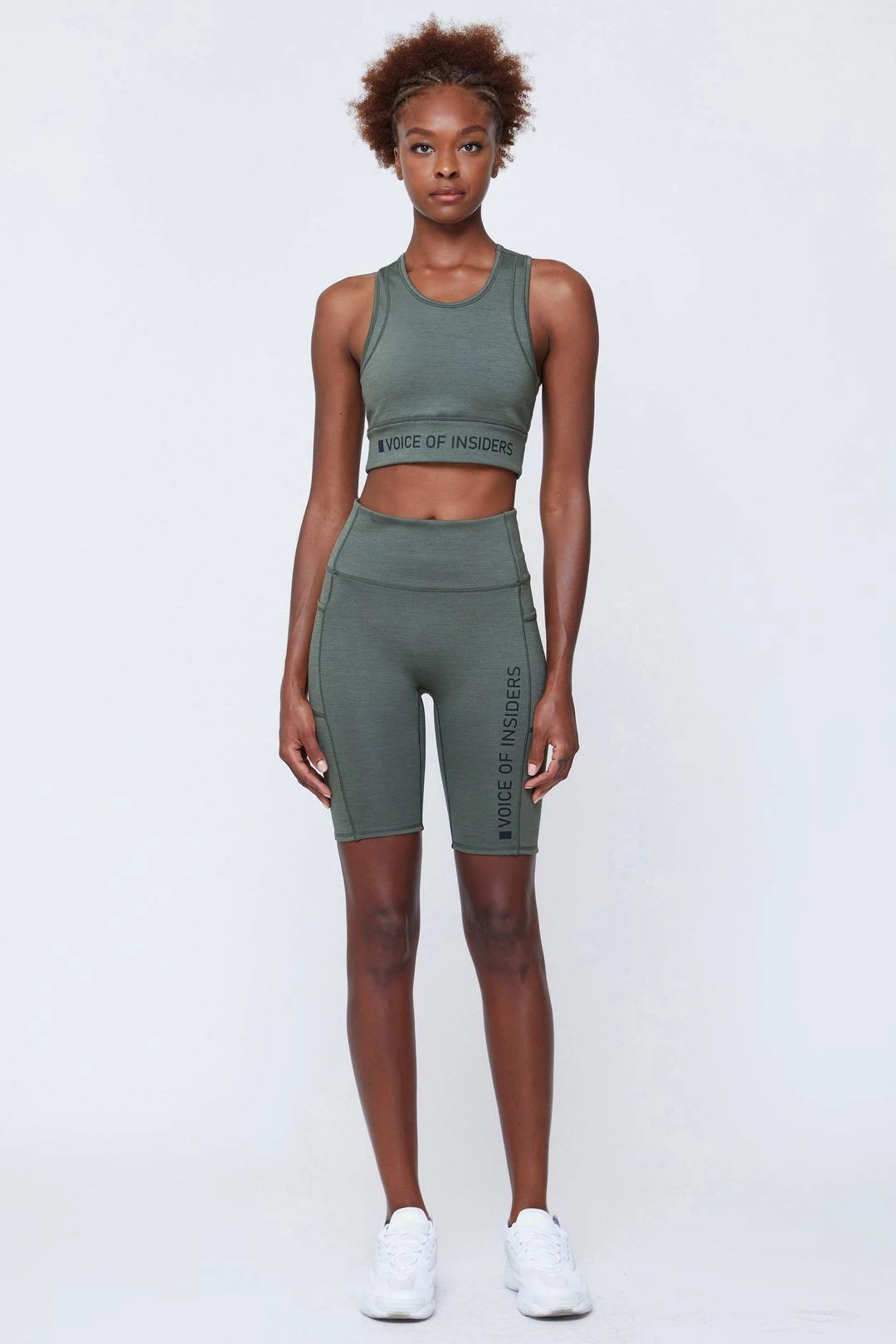- Designed in yarn/dye high-spandex compression interlock featuring a heather look with great stretch and recovery.