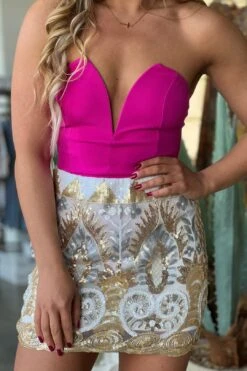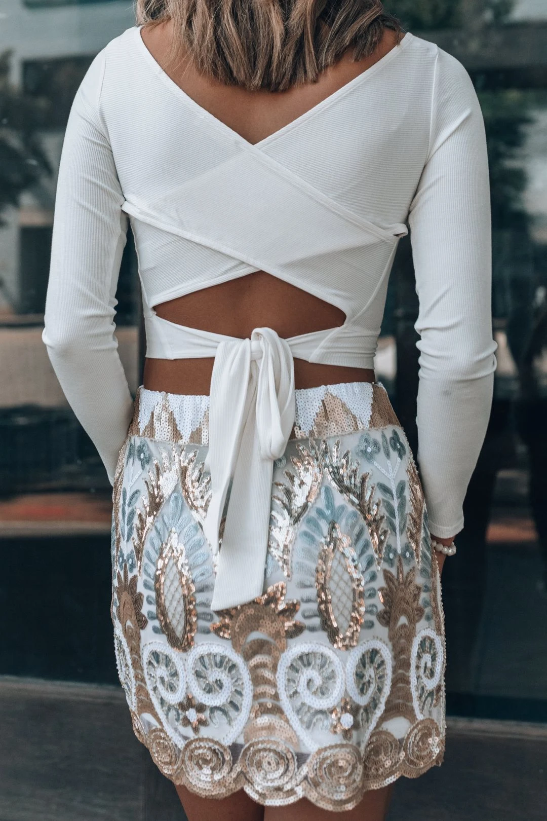 You are pure royalty in our Wear The Crown Sequin Mini Skirt. This printed piece speaks for itself from its unique sequin pattern, pair with anything colors, and adorable scallop hemline finish.