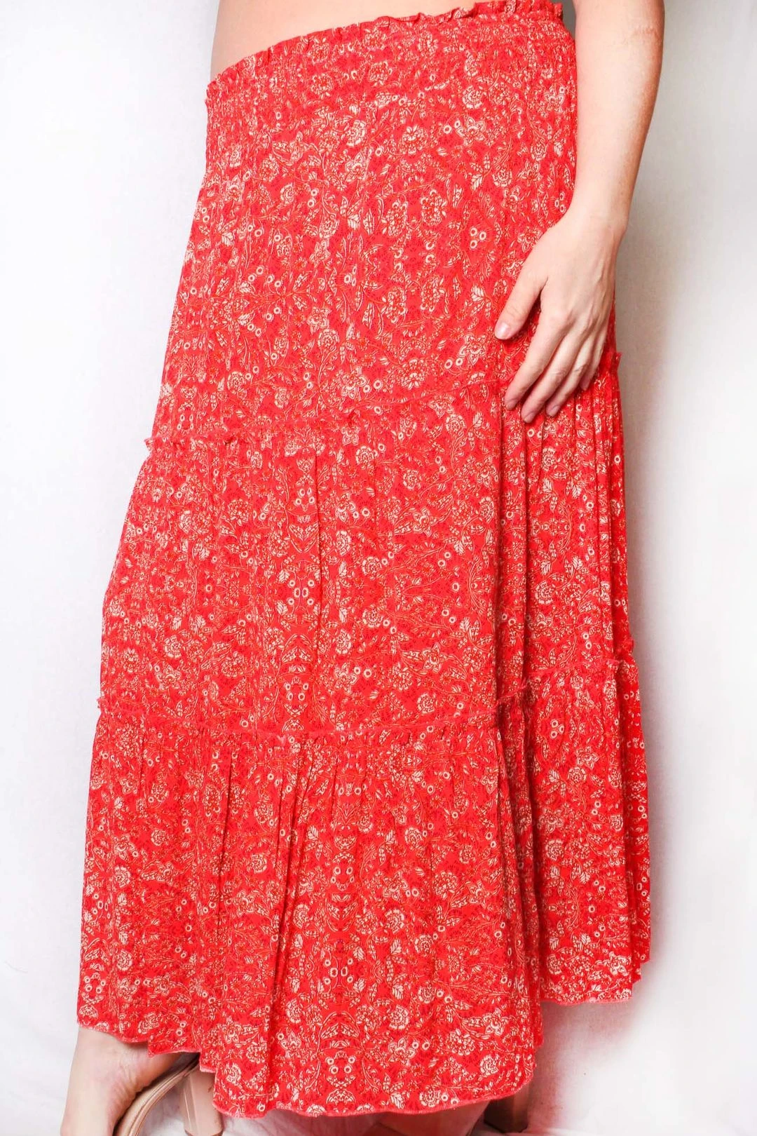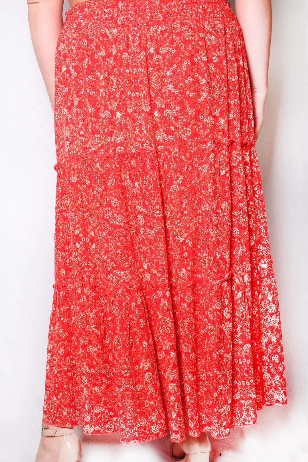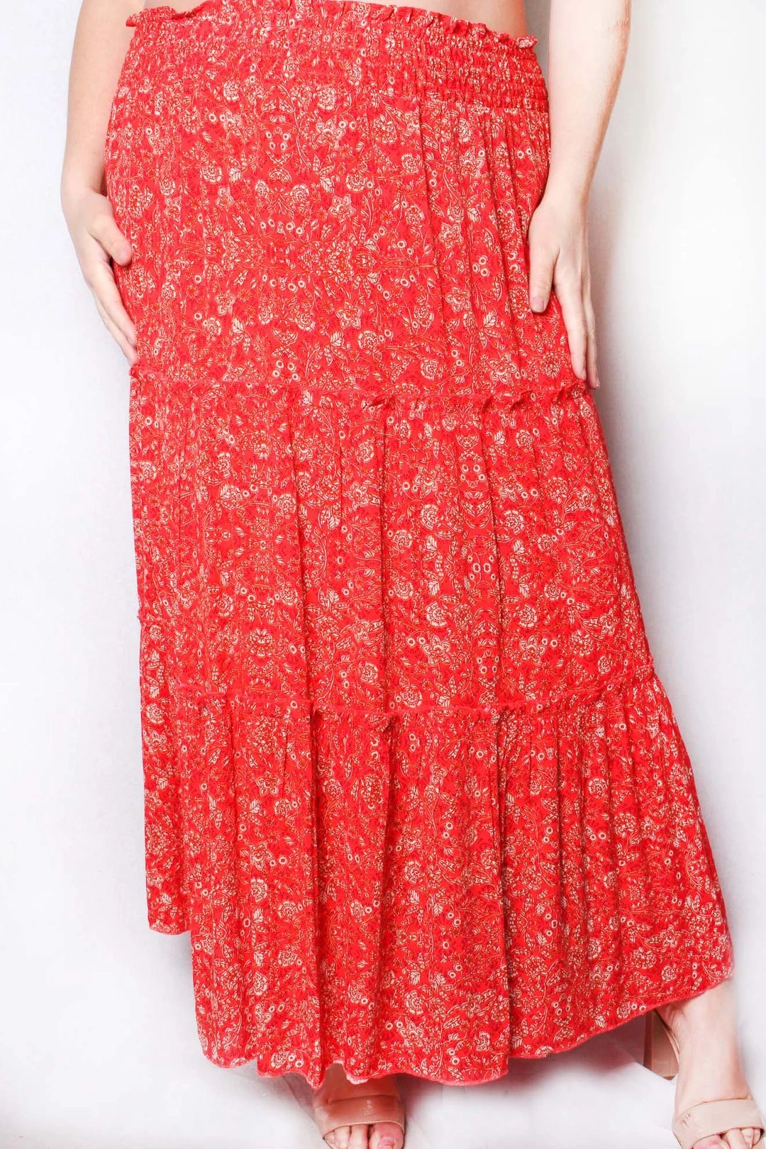 Women’s Plus High Waisted Ruffle Printed Skirt