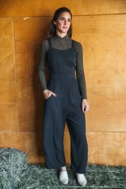 Fully adjustable strap length Criss crosses on the back,  wide leg with lot of room for bootie.  Deep pockets in the perfect place.  Pair with a tank top, long sleeve, our mock crop top or nothing at all.  Nylon zipper & adjustable sash closure.  Perfectly transitions in to the changing seasons and loves to travel. Â